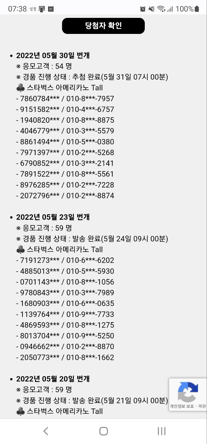 하루에 10명을 추첨하는데 참여자 수가 36명(16일), 45명(19일), 59명(20일), 59명(23일), 54명(30일)....