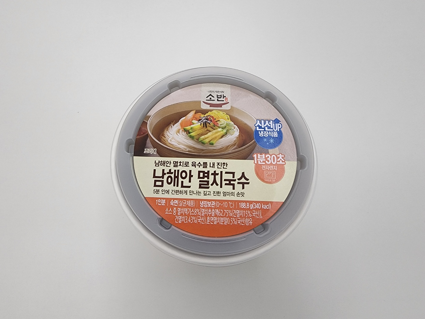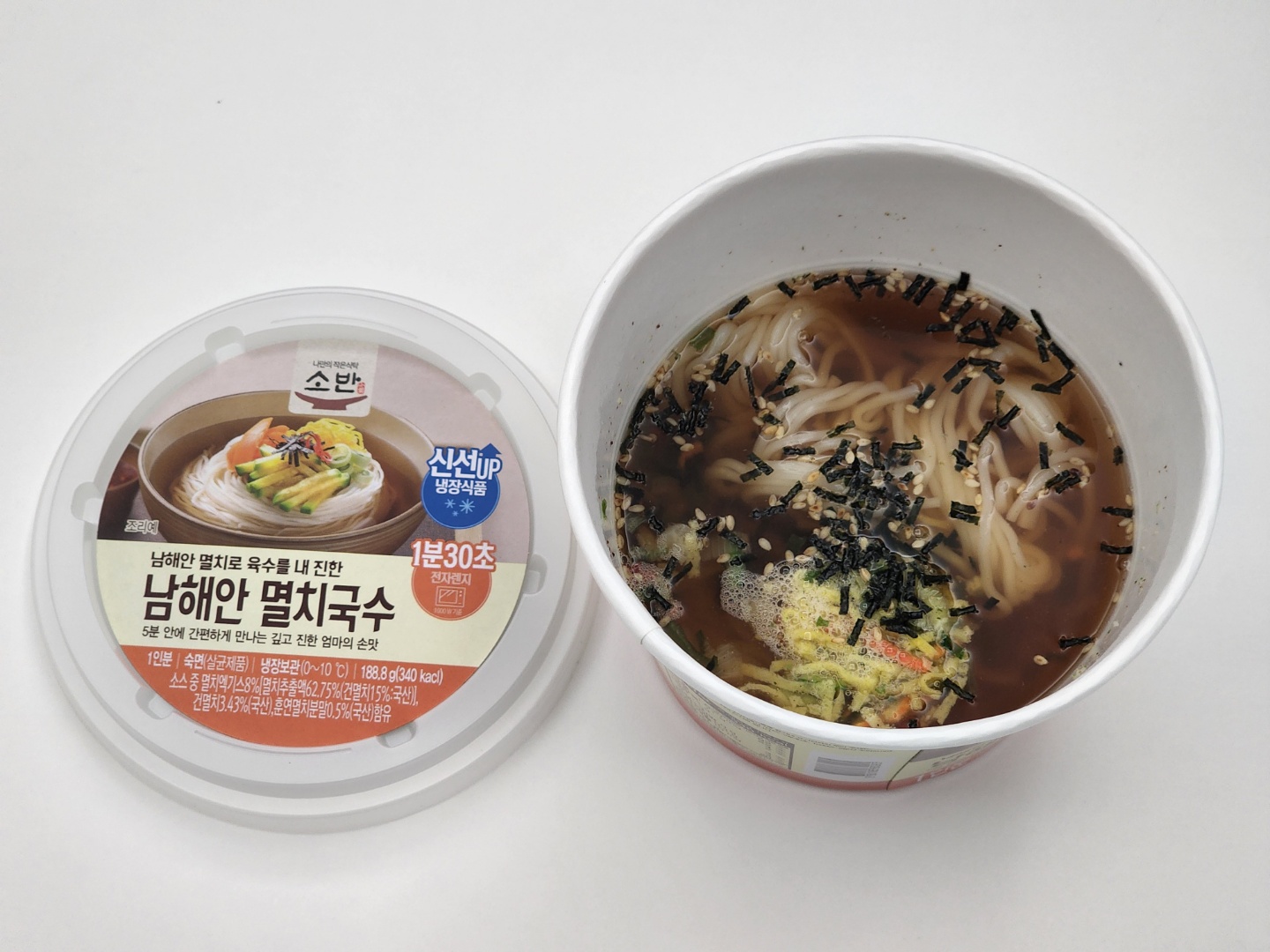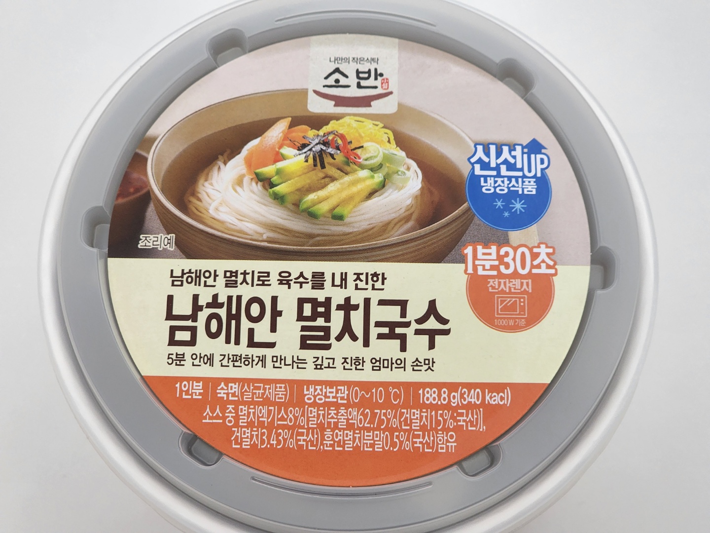 세븐일레븐의 1인분 간편가정식 브랜드 '소반'의 '남해안 멸치국수'를 먹어보았습니다. '남해안 멸치로 육수를 내 진한'이라는 수식어가 이 제품의 컨셉을 잘 표현하고 있는데요. 정말 그런 수식어에 걸맞는지 한 번 보시죠.