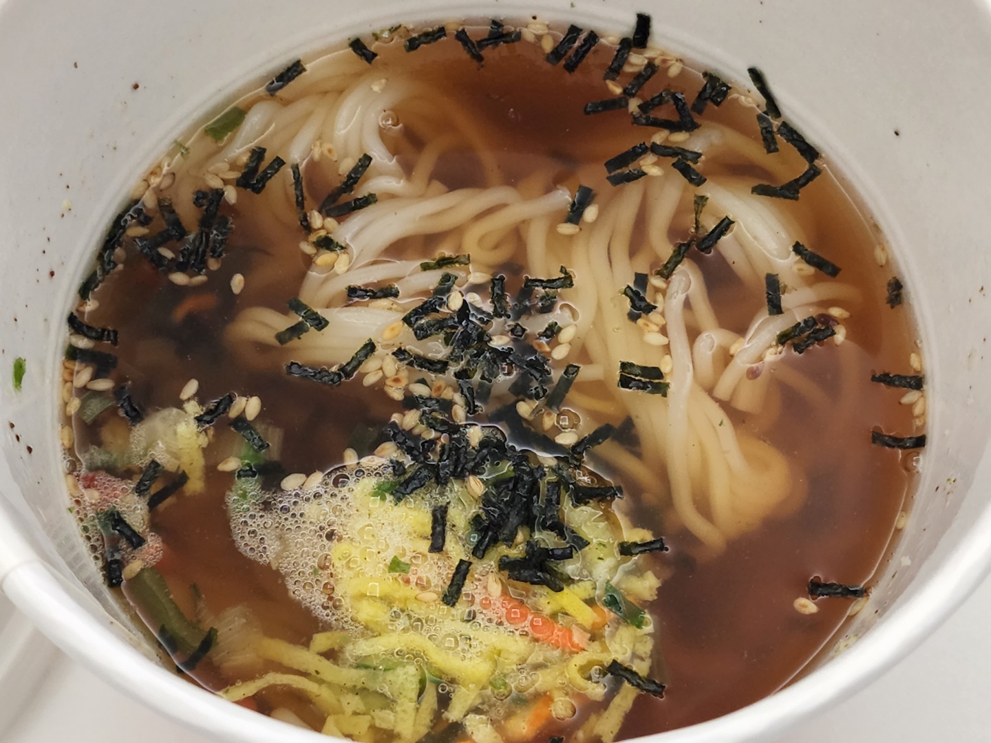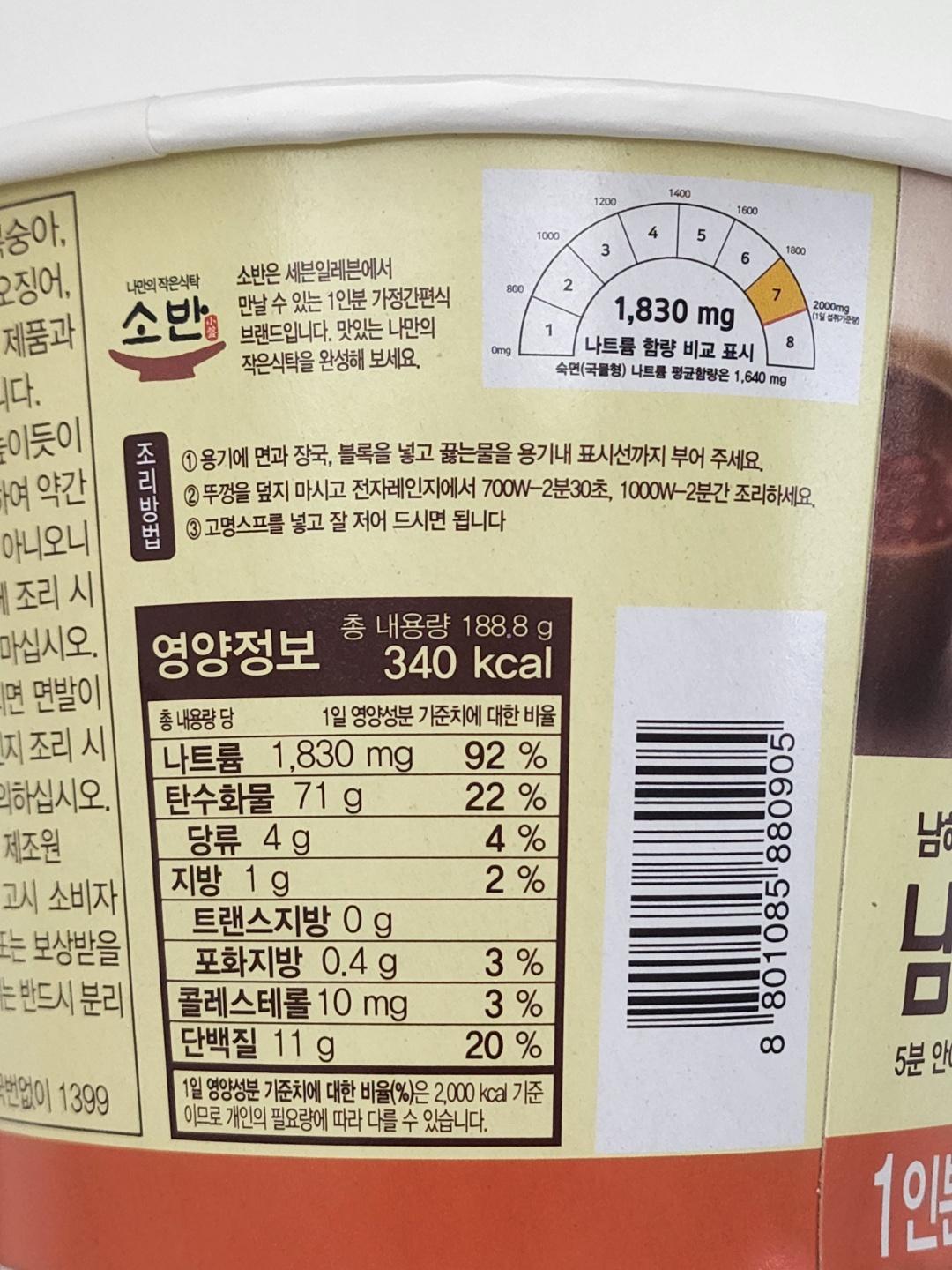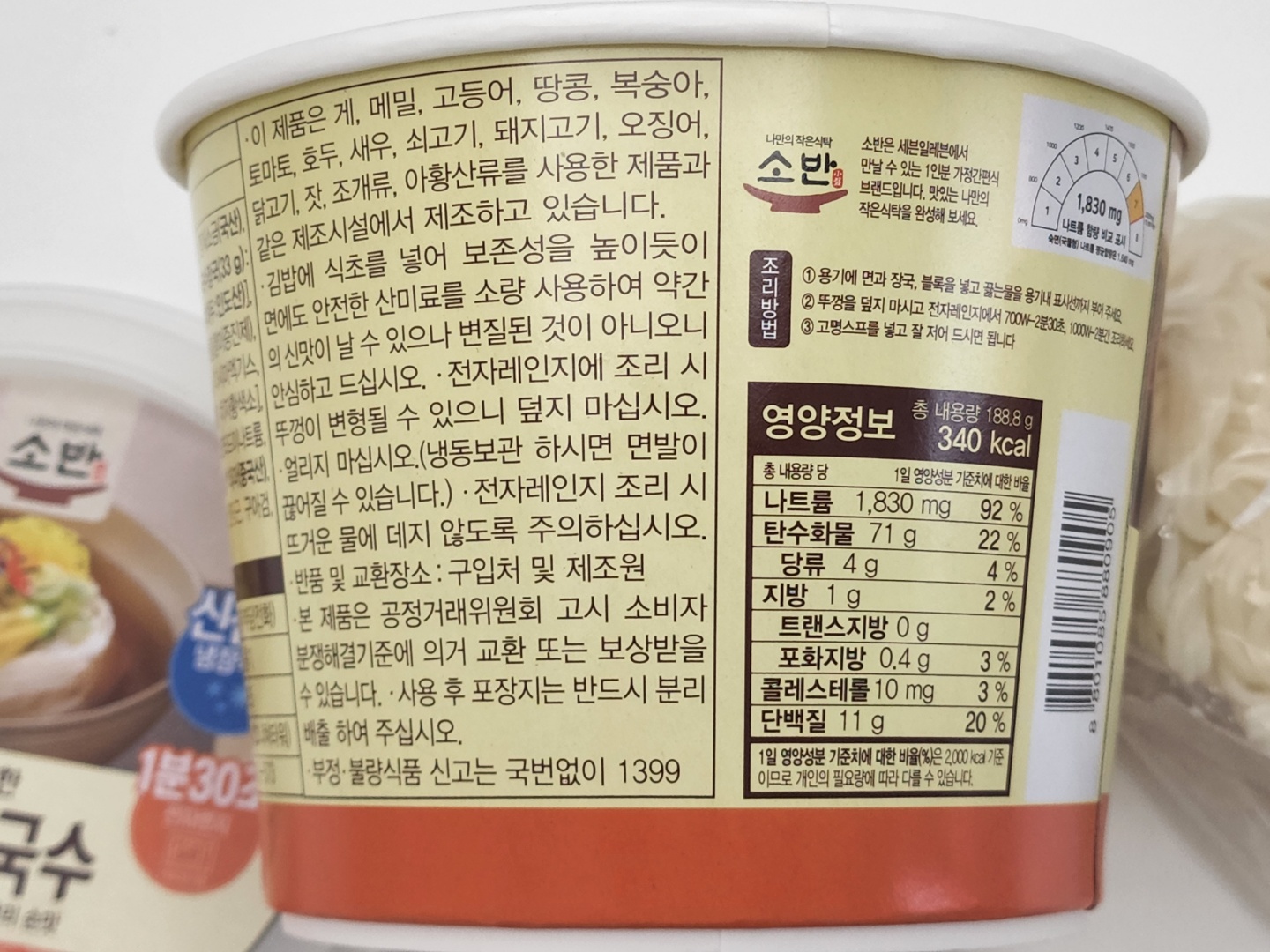 멸치로 육수를 내어서 그랬는지 어쨌는지 알 길은 없습니다만, 국물이 매우 만족스럽습니다. 너무 강하지도 너무 약하지도 않게 딱 좋은 농도와 맛입니다. 1,830mg의 적지 않은 나트륨 함량에도 불구하고.....
