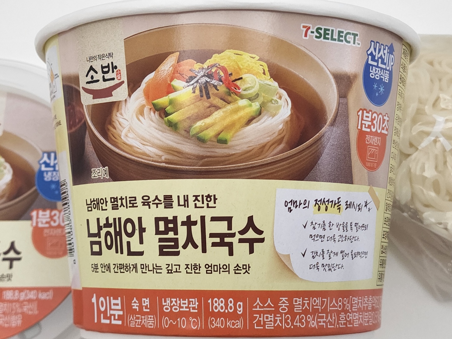 세븐일레븐의 1인분 간편가정식 브랜드 '소반'의 '남해안 멸치국수'를 먹어보았습니다. '남해안 멸치로 육수를 내 진한'이라는 수식어가 이 제품의 컨셉을 잘 표현하고 있는데요. 정말 그런 수식어에 걸맞는지 한 번 보시죠.