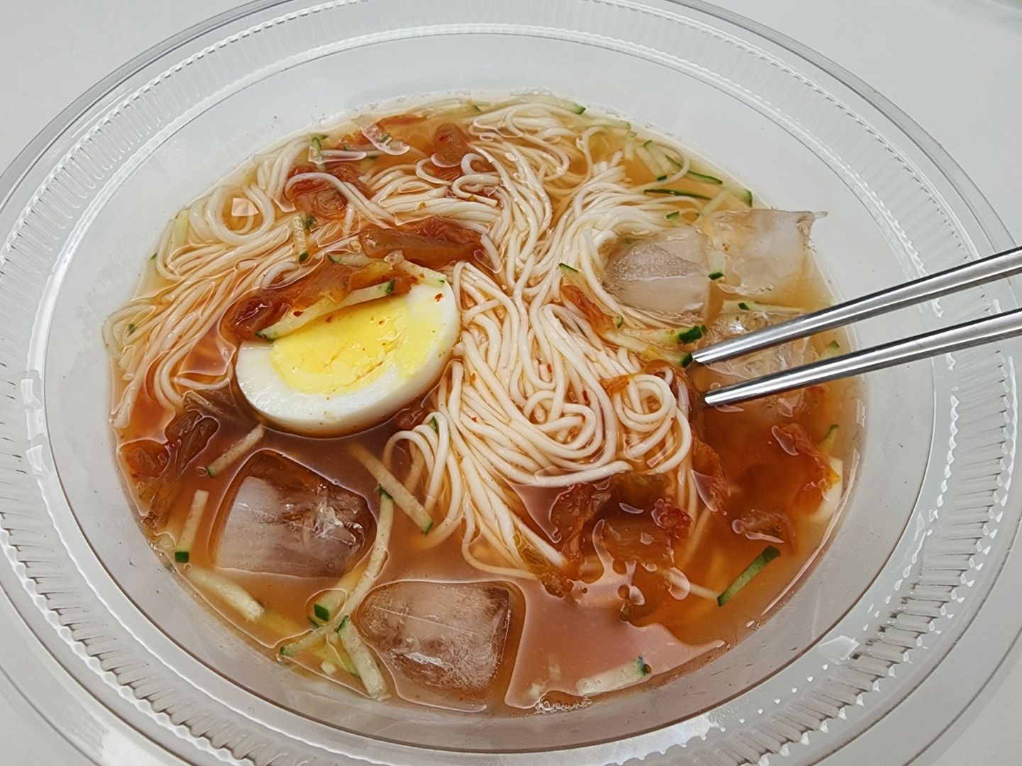 육수를 붓고 얼음까지 올려서 제품이 완성된 모습입니다.