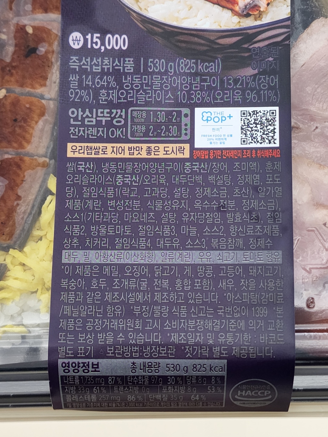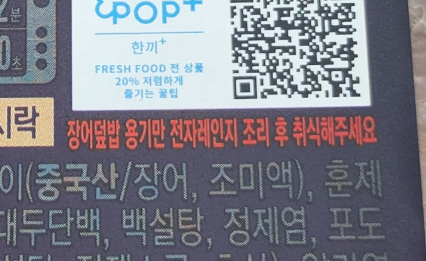 "장어덮밥 용기만 전자레인지 조리 후 취식해주세요?????"