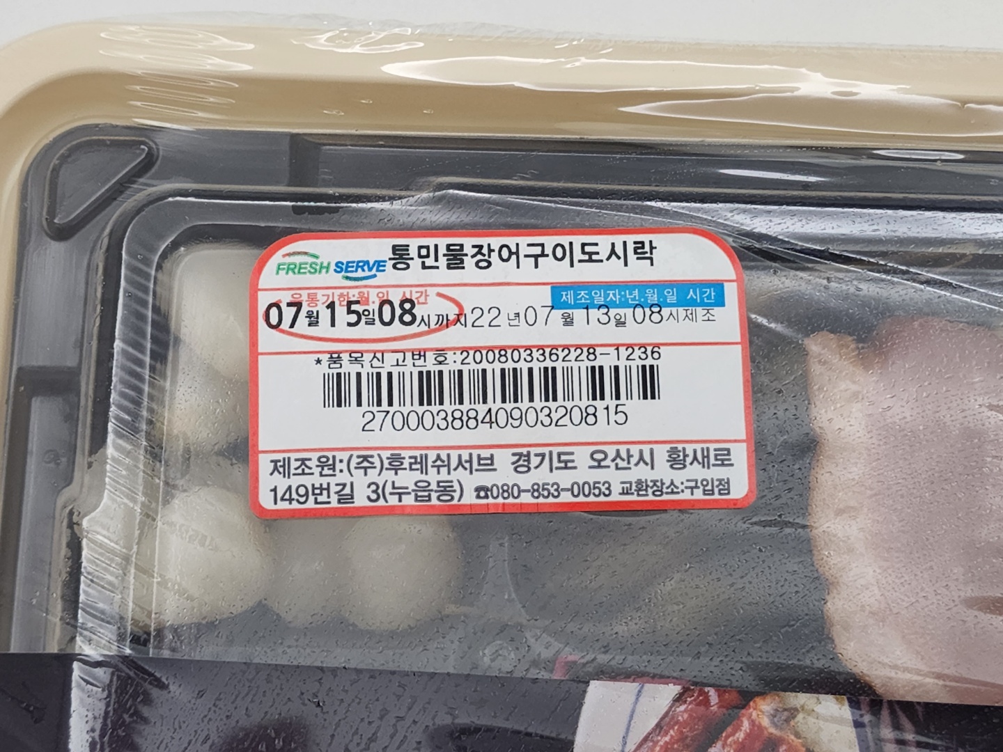 일반적인 도시락 제품처럼 유통기한은 매우 짧습니다. 제조일시로부터 이틀. 물류/유통시간을 감안하면 하루 반 나절만에 팔려야 하는데요. 이런 고가의 도시락이 유통기한 넘어서 폐기된다면 참 안타까운 일입니다. 저는 폐기 시간 거의 임박해서 구매했습니다. 어쩐지 점주님이 너무 기뻐하시는 눈빛이었어요. ^ㅅ^;;;