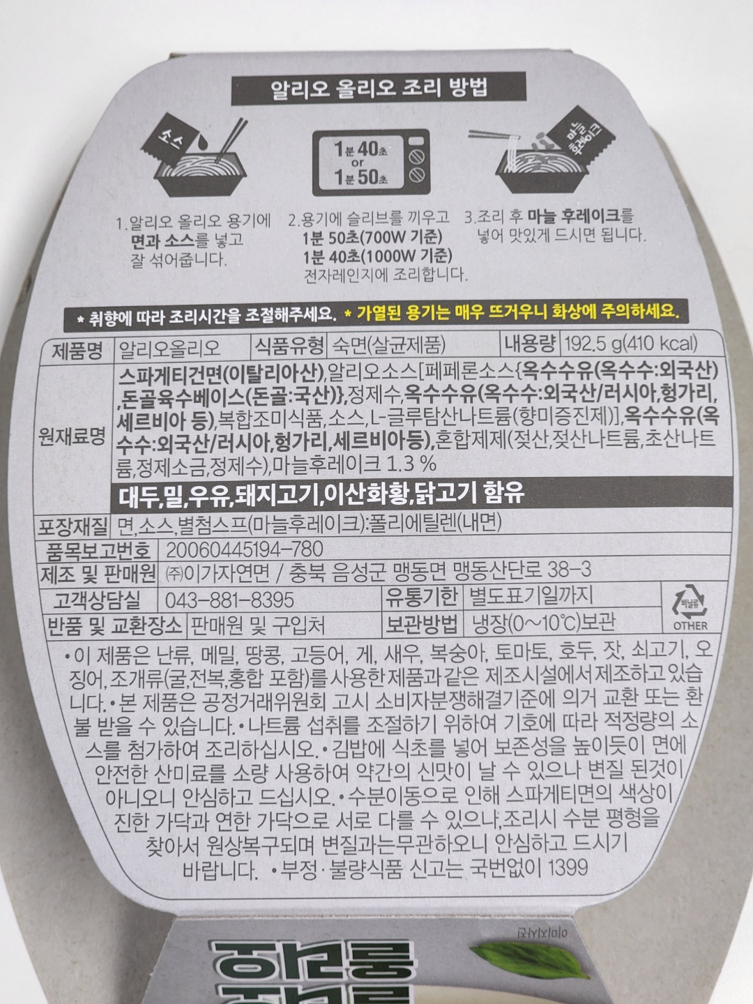 지난 번에 수육을 살 때 알리오 올리오 파스타도 같이 샀거든요. 그래서 이번에는 알리오 올리오 파스타 리뷰입니다. ^ㅅ^