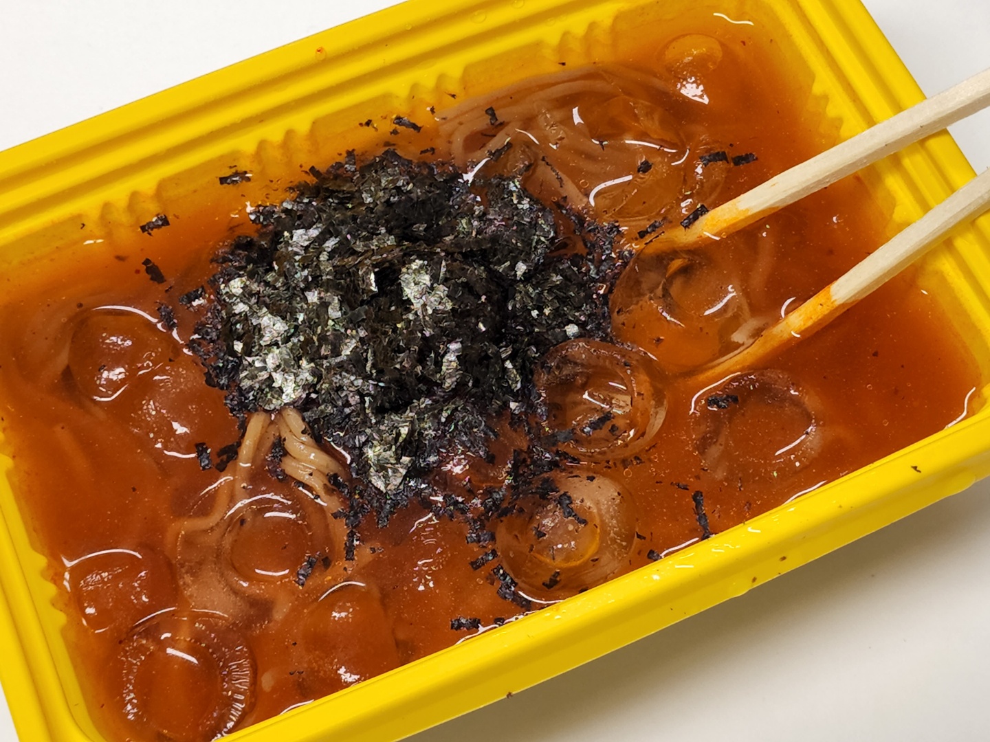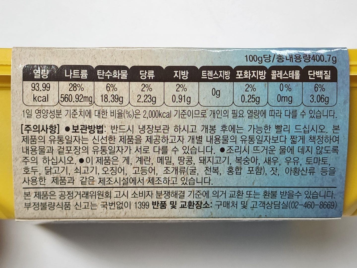 '친환경'이라는 문구가 제품 여기저기에 있던데요. 네, 환경을 위해서 비닐을 덜 사용하고자 했다? 뭐 그런 명분이 있을 순 있겠죠. 하지만 친환경 이전에 먼저 위생이 아닐까요? 혐오감을 드릴까 봐 사진은 올리지 않습니다만, 종이 슬리브를 벗겨내자 노란 용기 뚜껑에 죽은 날파리가 2 마리 있었습니다. 심지어 용기 안에도 정체 모를 검은 부스러기 같은 게 있었어요. (날파리 아니라고 나 혼자 정신 승리하면서도 결국 용기를 물로 세척하고 조리를 시작했습니다;;;;
