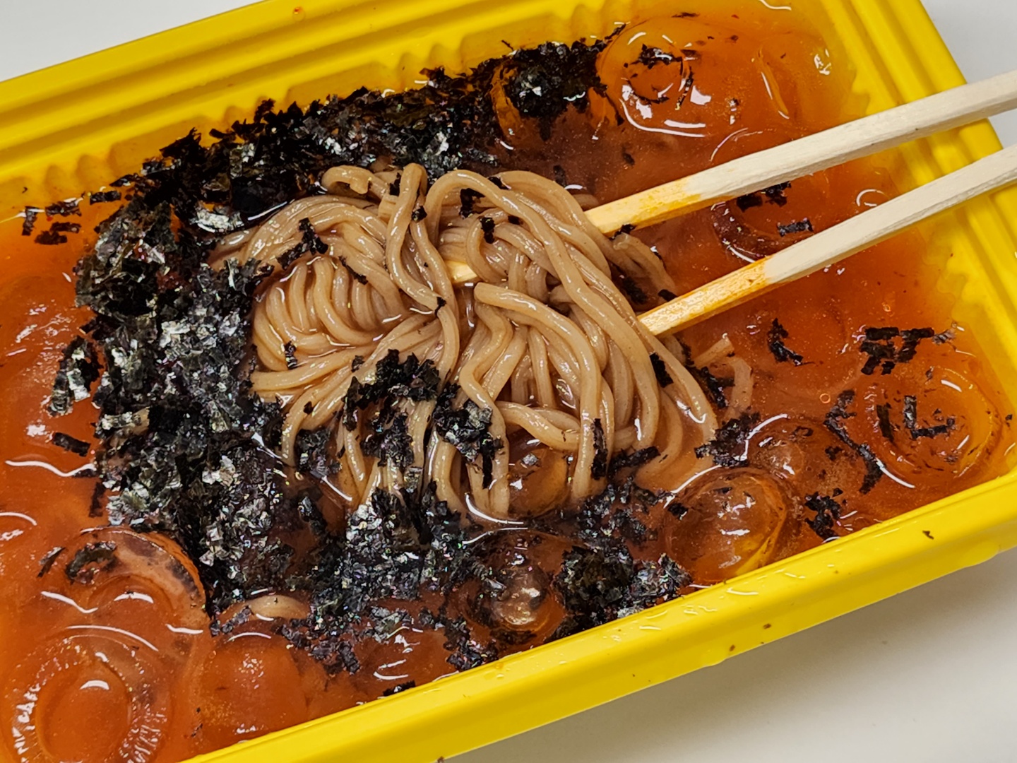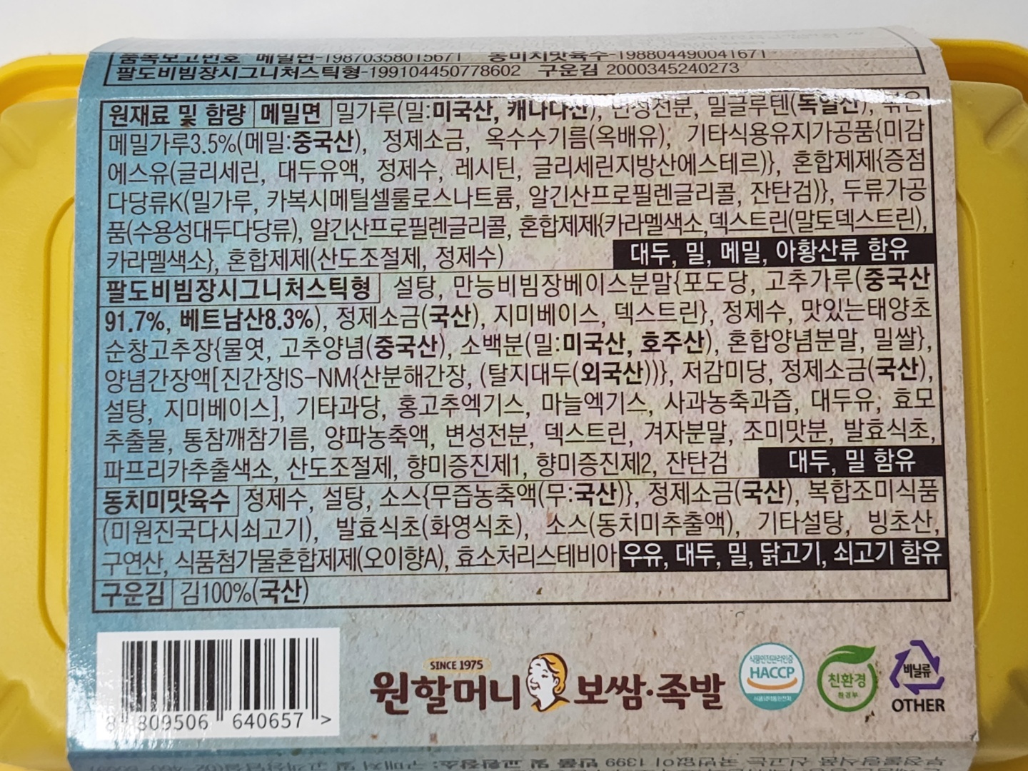 '친환경'이라는 문구가 제품 여기저기에 있던데요. 네, 환경을 위해서 비닐을 덜 사용하고자 했다? 뭐 그런 명분이 있을 순 있겠죠. 하지만 친환경 이전에 먼저 위생이 아닐까요? 혐오감을 드릴까 봐 사진은 올리지 않습니다만, 종이 슬리브를 벗겨내자 노란 용기 뚜껑에 죽은 날파리가 2 마리 있었습니다. 심지어 용기 안에도 정체 모를 검은 부스러기 같은 게 있었어요. (날파리 아니라고 나 혼자 정신 승리하면서도 결국 용기를 물로 세척하고 조리를 시작했습니다;;;;