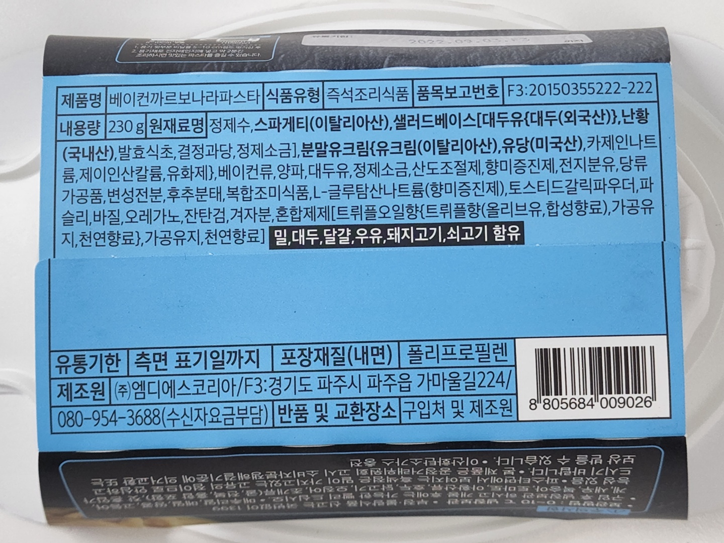 제품명 : 쉐프엠 베이컨 까르보나라 파스타