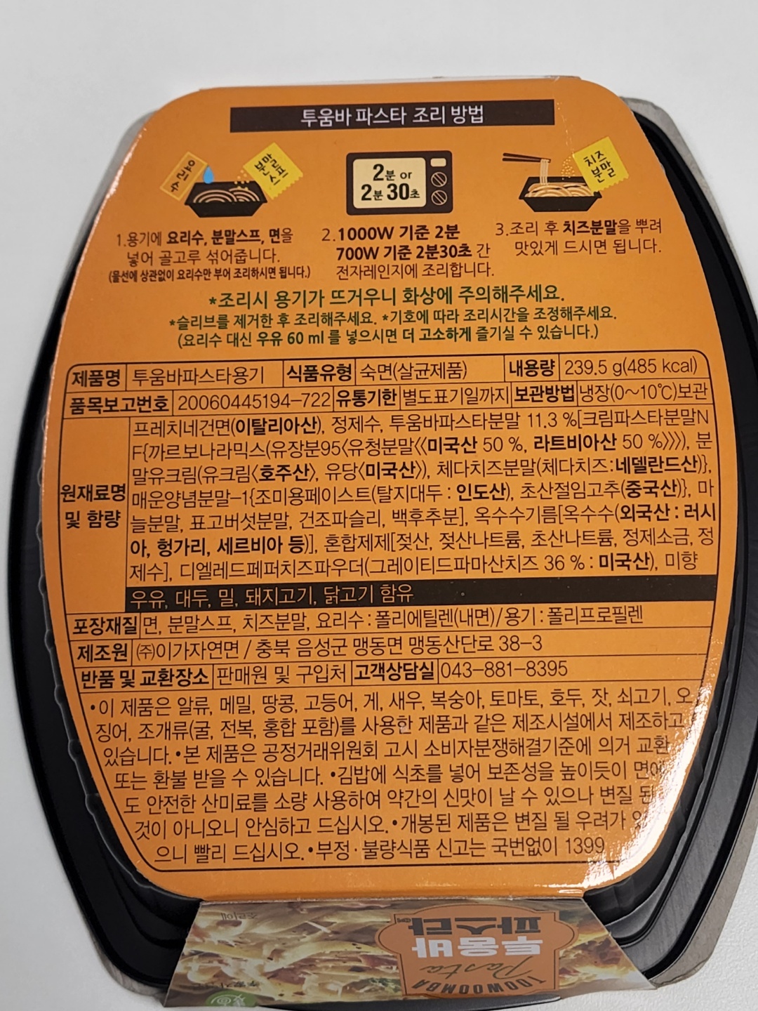 제품명 : 이가자연면 투움바 파스타