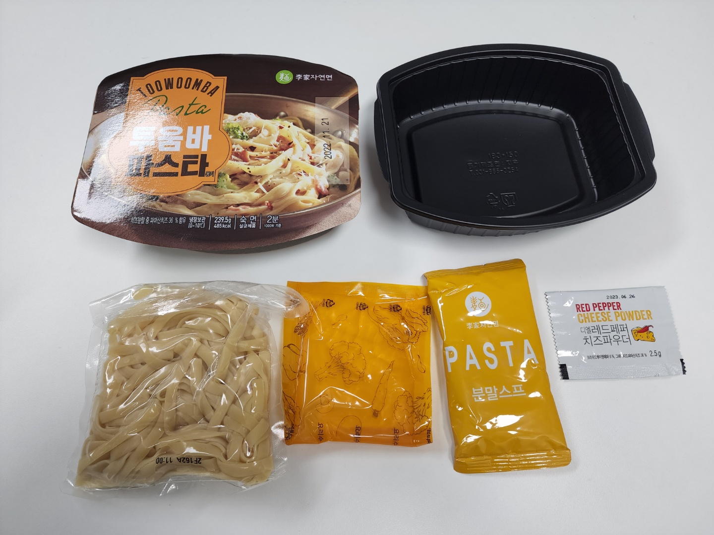 '투움바 파스타'는 크림소스에 매콤한 시즈닝을 추가한 것이 특징인데요. 그래서 '이가자연면 투움바 파스타' 구성품을 보면 '레드페퍼 치즈파우더'가 포함되어 있습니다.