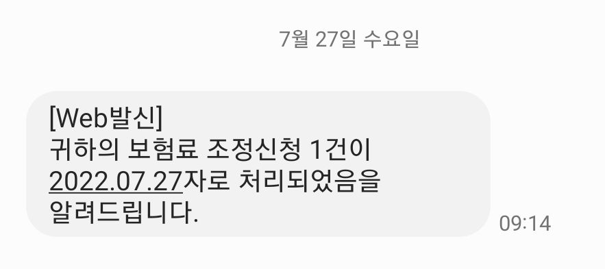 아래 스크린샷과 같이 처리 완료 문자가 오는데요. 만약 이 문자를 못 받으시면 꼭 1577-1000에 전화를 걸어서 확인해보세요. 참고로 저는 서류를 팩스로 보내고 2일 후에 처리 완료 문자를 받았습니다.