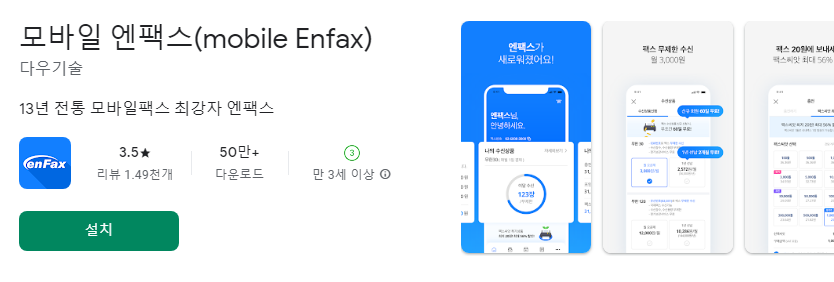 050 스팸 문제가 없는 앱도 있습니다. 다우기술에서 제공하는 '모바일 엔팩스' 앱인데요.