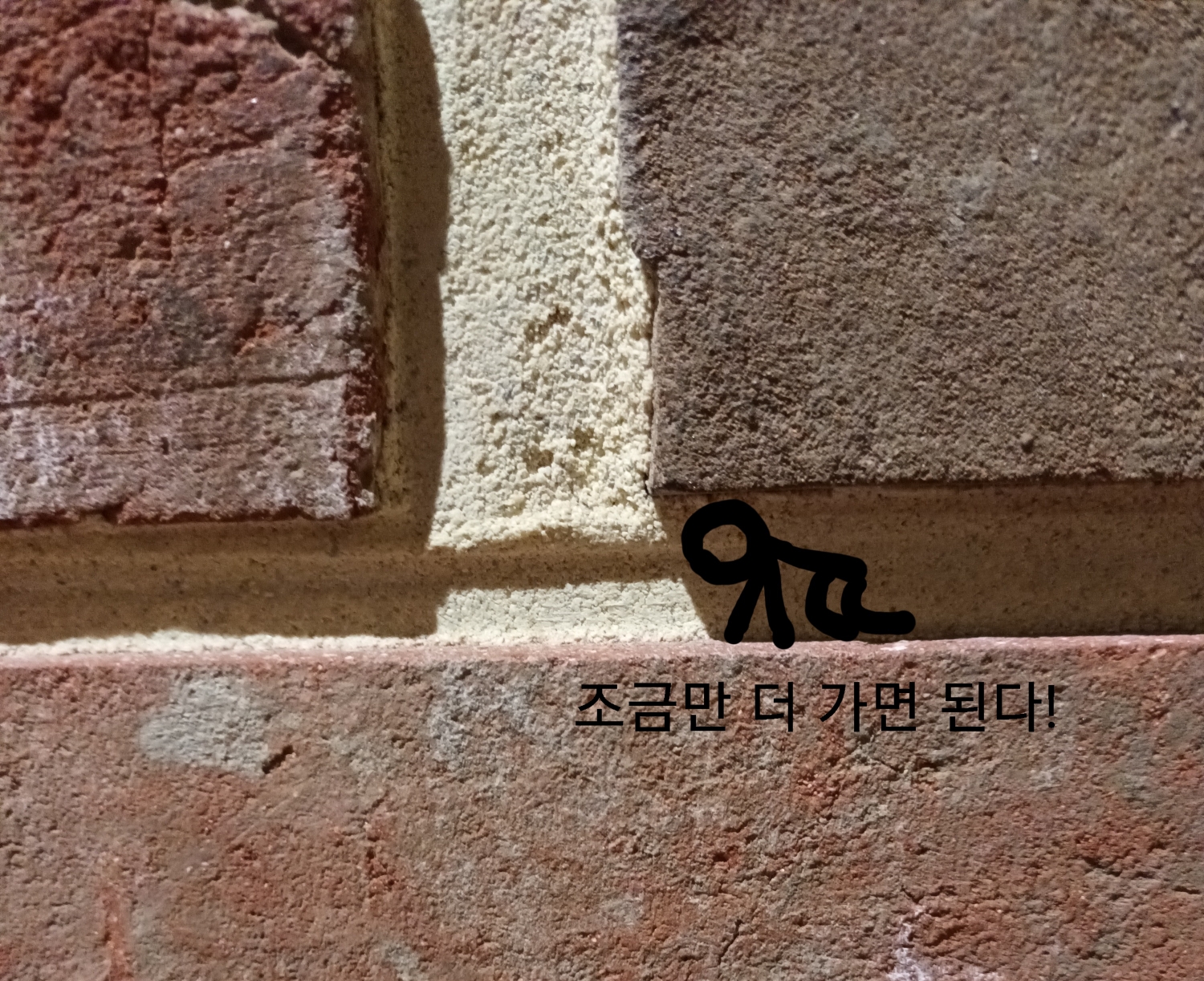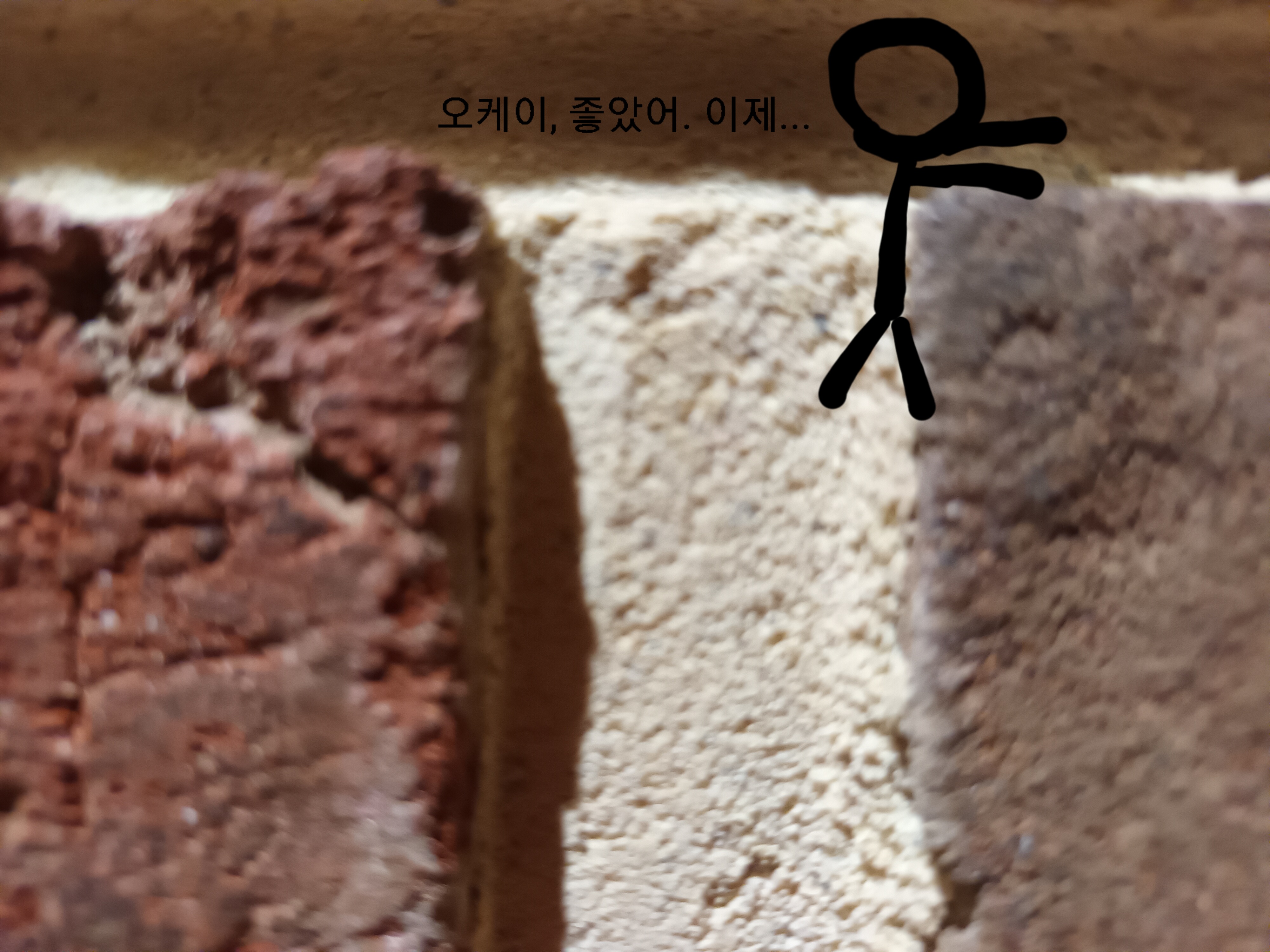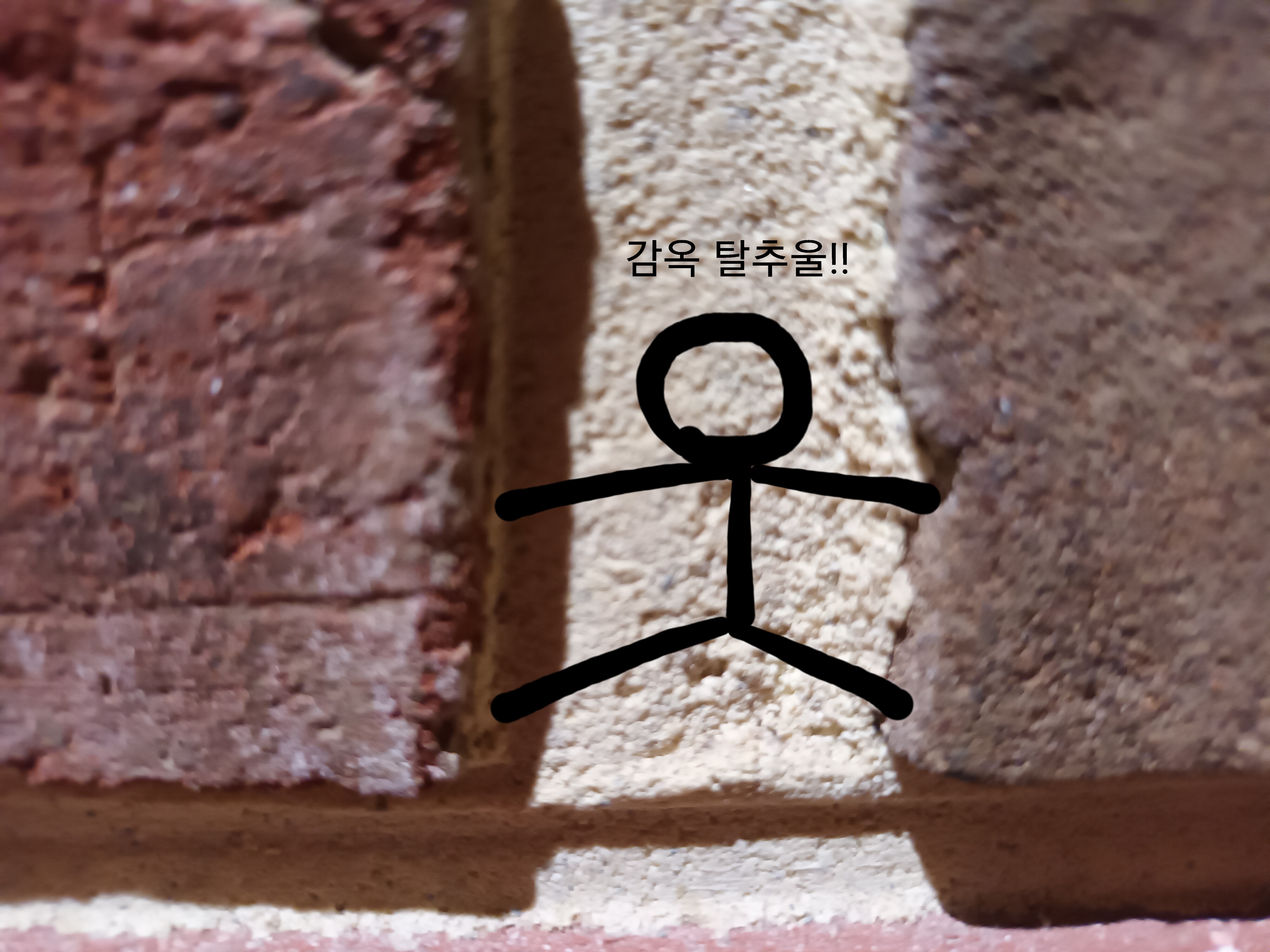 벽돌 사진을 찍고 그 위에 그림과 텍스트를 넣었다. 범죄자가 감옥을 탈출하는 내용!