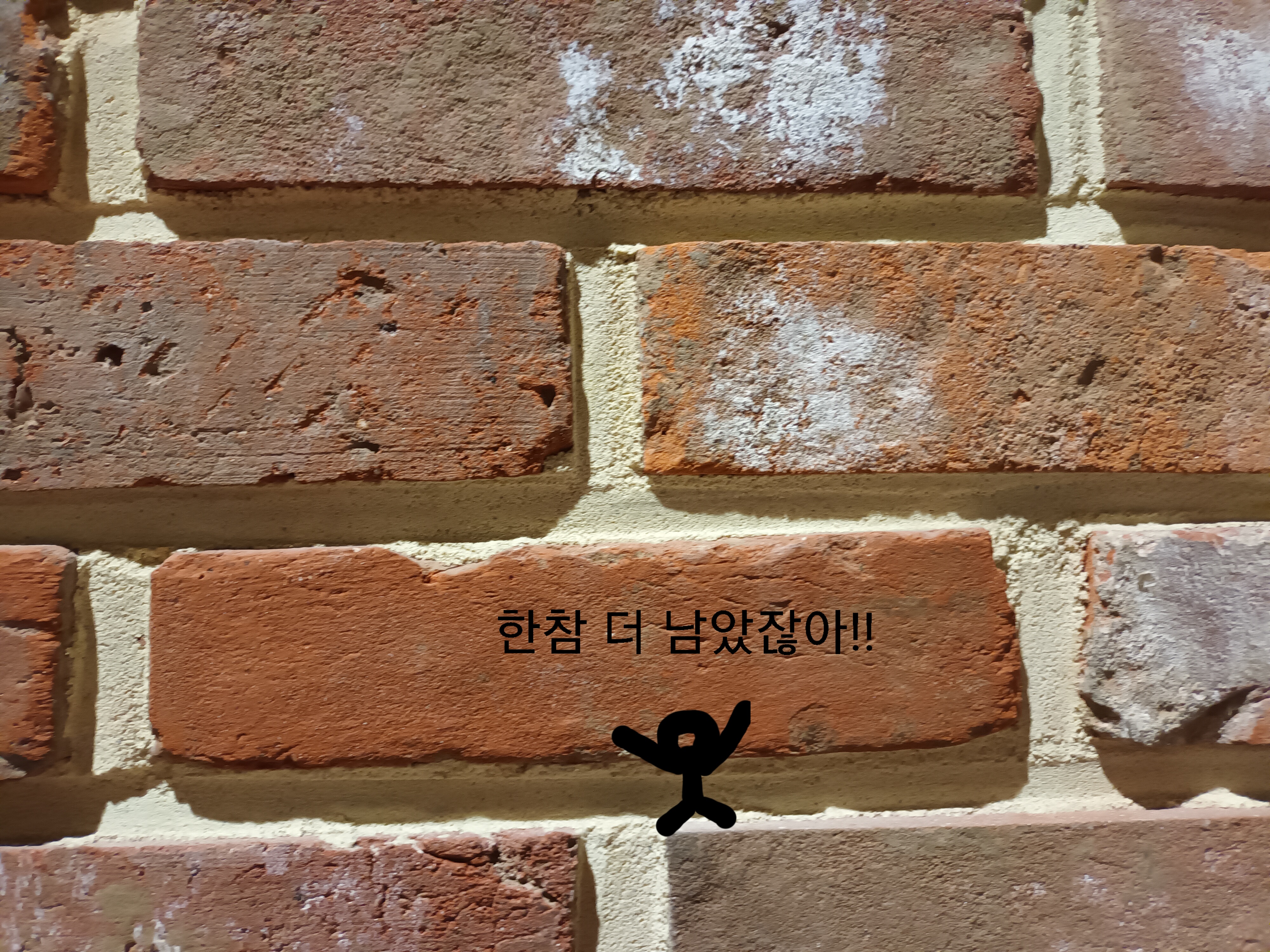벽돌 사진을 찍고 그 위에 그림과 텍스트를 넣었다. 범죄자가 감옥을 탈출하는 내용!