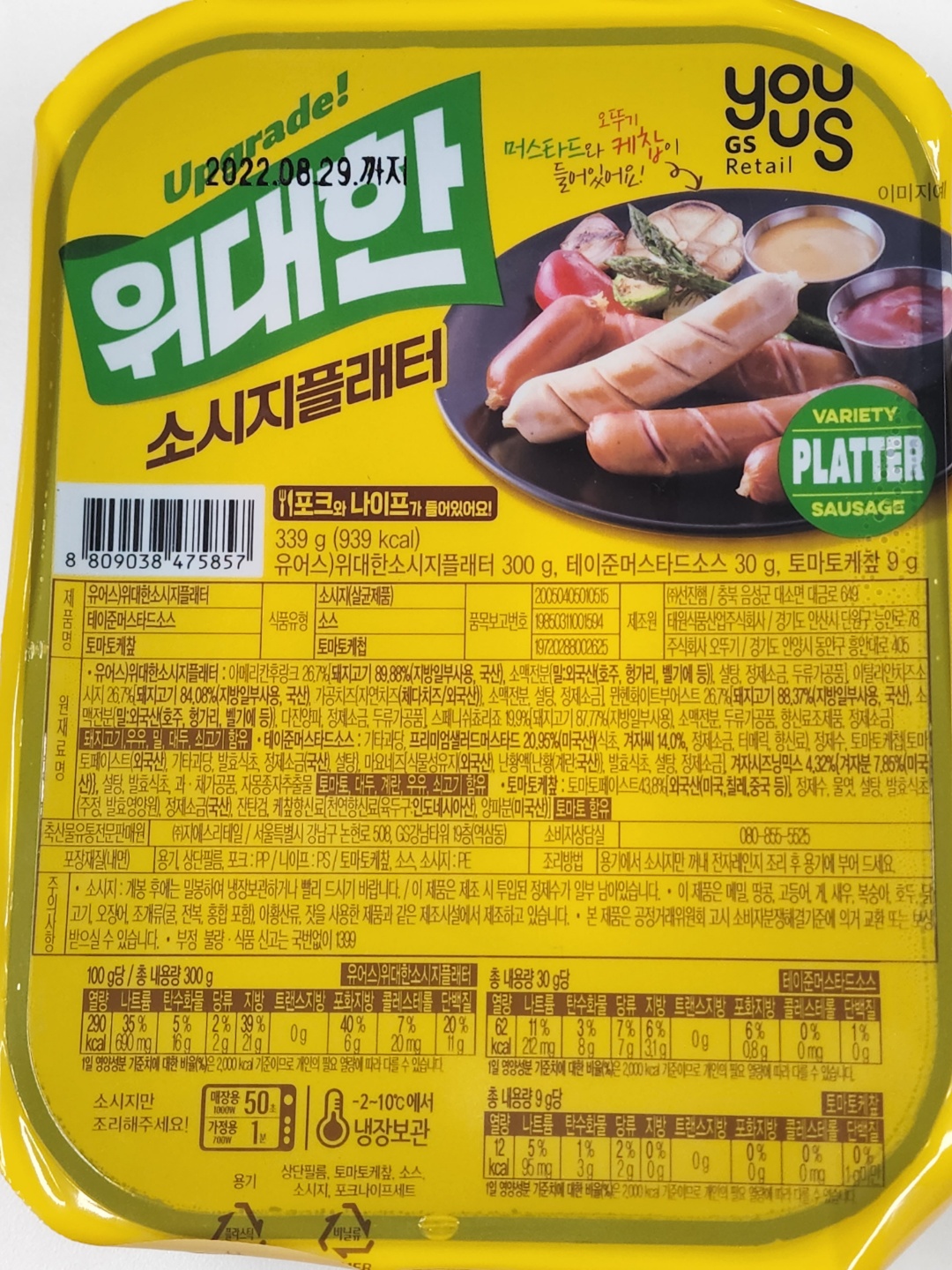 마케팅 측면에서는 포장 기획을 잘 한 제품입니다. '위대한' 이라는 타이틀에 혹해서 이 제품을 샀거든요. 그냥 '소시지플래터' 였다면 안 샀을 듯... '플래터(Platter)'는 사전적 의미로는 "음식을 차려 내는 데 쓰는 큰 서빙용 접시"를 뜻하는데요. 흔히 여러가지 종류의 음식을 다양하게 맛 볼 수 있도록 세트처럼 담아놓은 것을 '플래터'라고도 부릅니다. 소시지플래터면 여러 가지 종류의 소시지를 담았다는 뜻이겠죠.