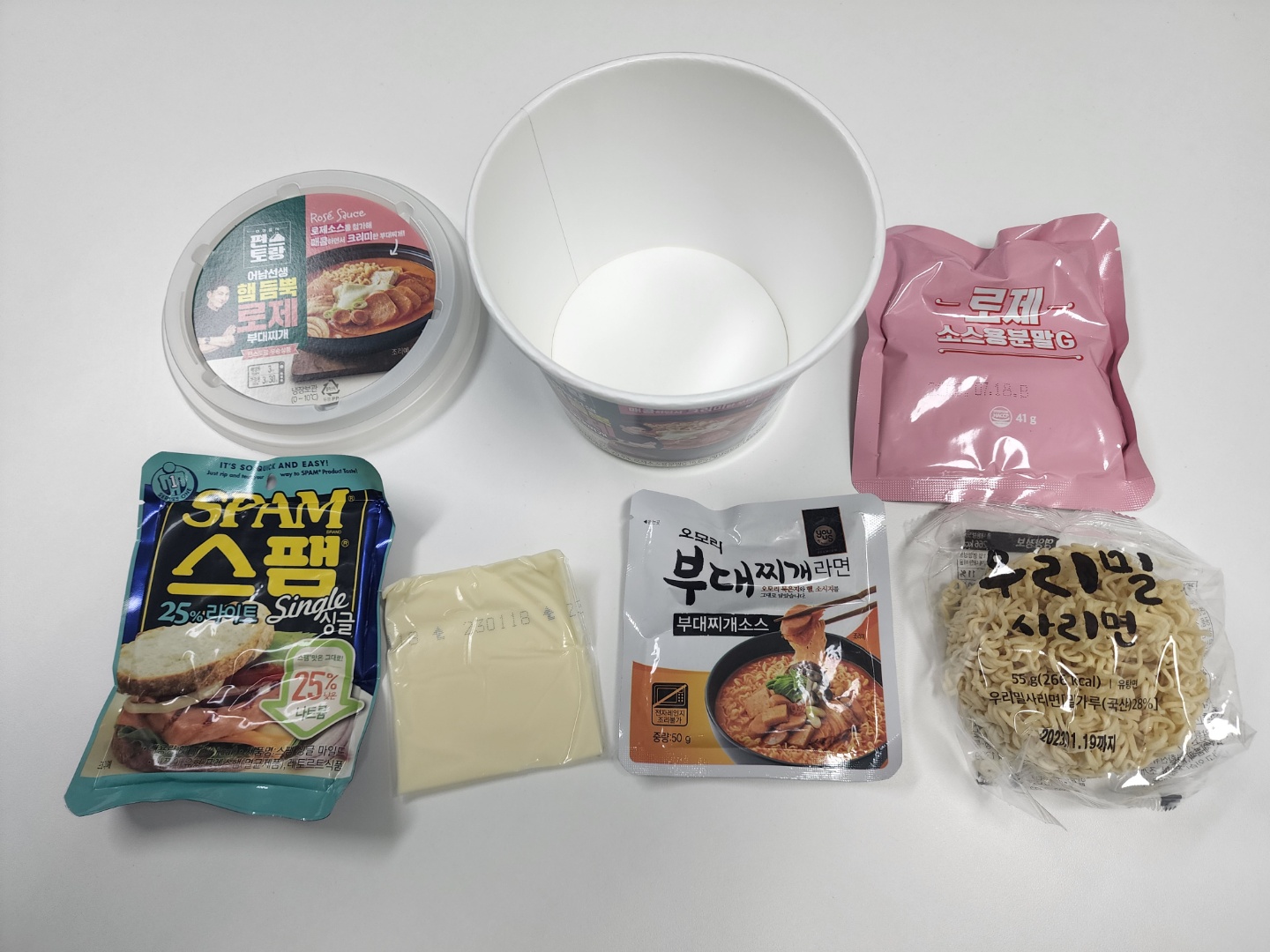 4,300원짜리 제품 치고는 꽤나 두툼한 스팸 덩어리를 집어넣음으로써 2,597 mg이라는, 제가 리뷰한 편의점 음식 중에서 역대급에 해당하는 나트륨 함량을 자랑하게 된 이 제품은, 스팸 외에도 부대찌개, 로제, 치즈 등 맛이 없을래야 없을 수 없는 온갖 종류의 식재료를 쏟아부었습니다. 4,300원으로 이게 가능한가 싶은 수준인데요.