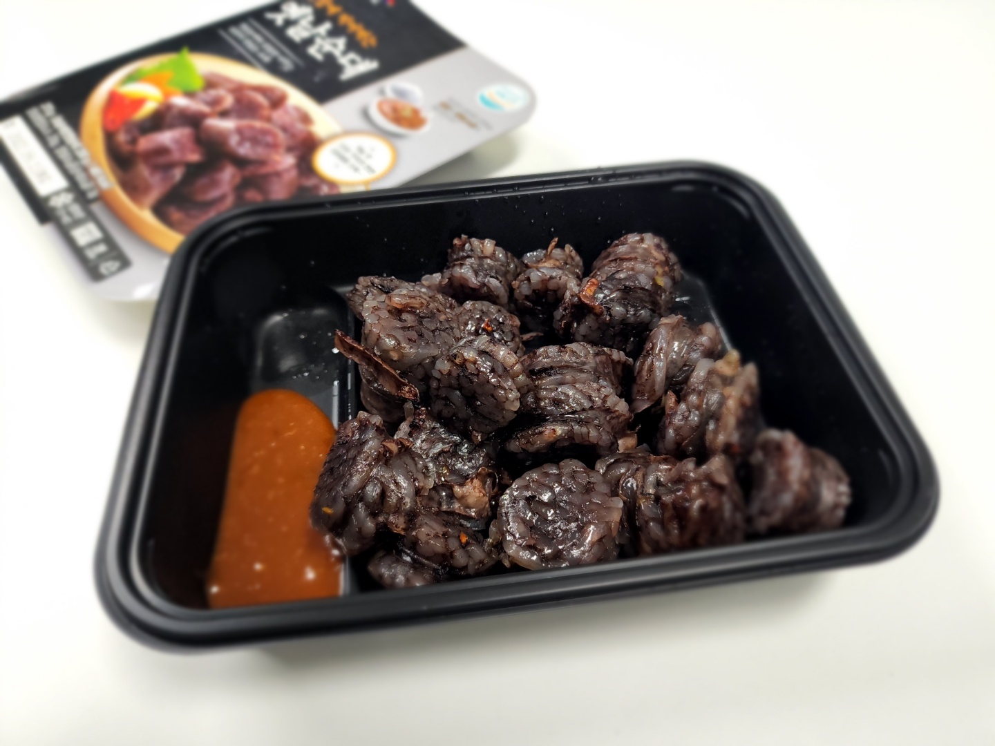 이 제품도 전자렌지로 조리한 순대를 용기에 담아 먹으라고 되어 있는데, 먼지가 쌓이고 다른 이물질이 들어갈 수도 있는 상태로 유통되는 제품 용기에 그냥 담아 먹으라는게 영 내키지 않네요. 물로라도 세척을 한 번 하고 먹어야 되지 않나 싶습니다. 하지만 편의점에서 드실 때는 그마저도 여의치 않지요. 가장 좋은 것은 이물질이 들어가지 않도록 겉포장을 하는 것입니다.