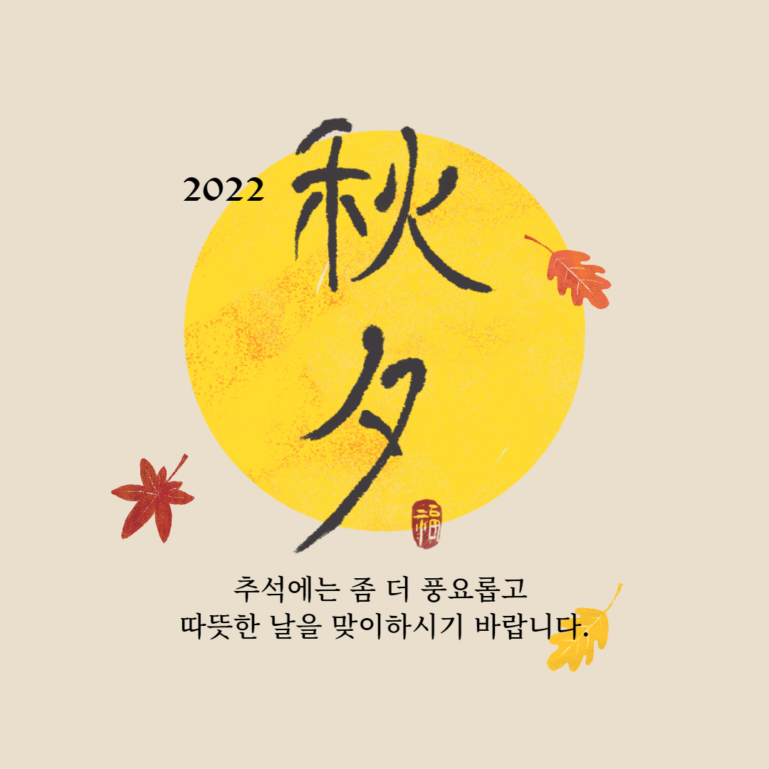- 2022년 풍요로운 한가위 보내시고, 가정에 웃음이 가득하시길 기원합니다.