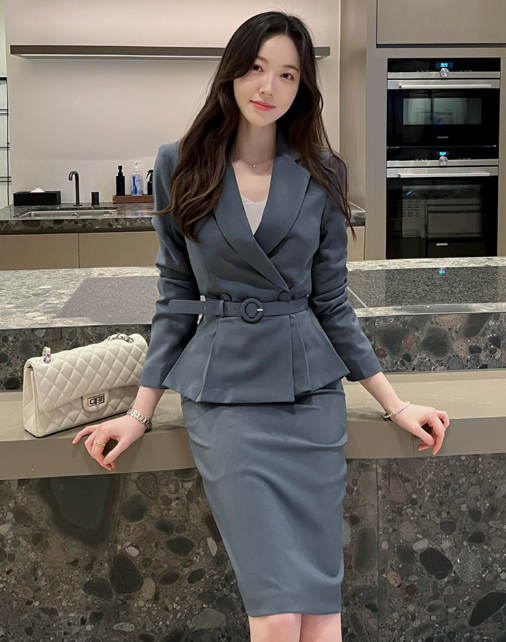 여성스러운 페플럼 디자인의 자켓 + 스커트 셋업!