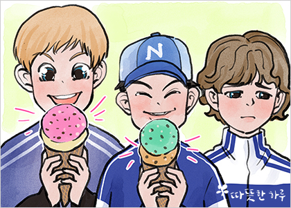 아이스크림을 파는 가게에서 벌어진 상황입니다. 세 아이 중 둘만 아이스크림을 먹고 있고 한 아이는 그 모습을 계속 지켜보고 있었습니다. 옆에 있던 아이의 아빠는 아이스크림을 받지 못한 아
