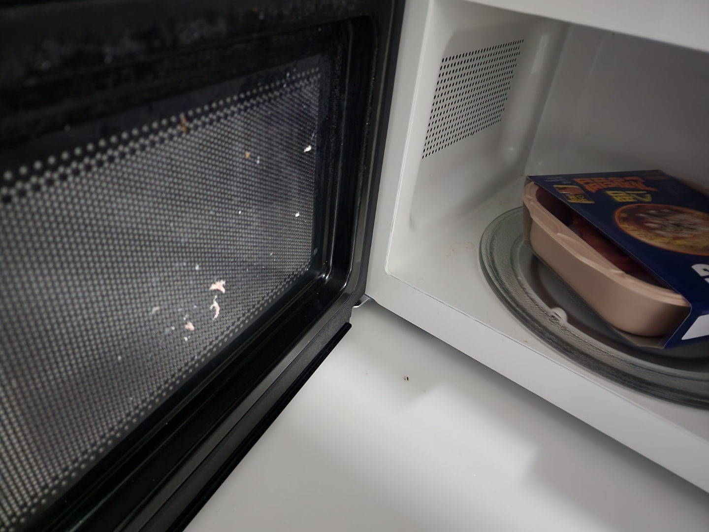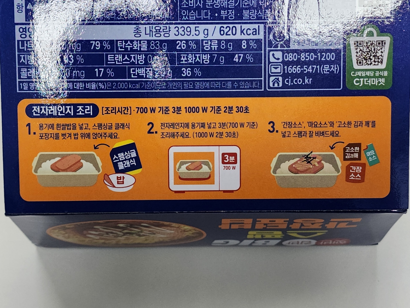 보는 순간, "종이 슬리브를 안 끼우고 스팸을 전자렌지에 돌려도 되는 걸까?" 생각이 들었습니다만, 뭔가 조치가 되어 있으니 조리법을 이렇게 작성했겠지 싶었습니다. 그런데 돌리자마자 우려했던 대로 '타닥타닥' 하고 스팸이 튀는 소리가 들리는 겁니다! 부랴부랴 전자렌지를 멈추고 종이 슬리브를 끼우고 다시 돌렸습니다. 종이 슬리브는 용기 전체를 가리지 못하는 크기였지만, 그래도 원래 슬리브 없이 그냥 돌리라는 걸 슬리브까지 끼웠으니 안전하겠지 생각했습니다.