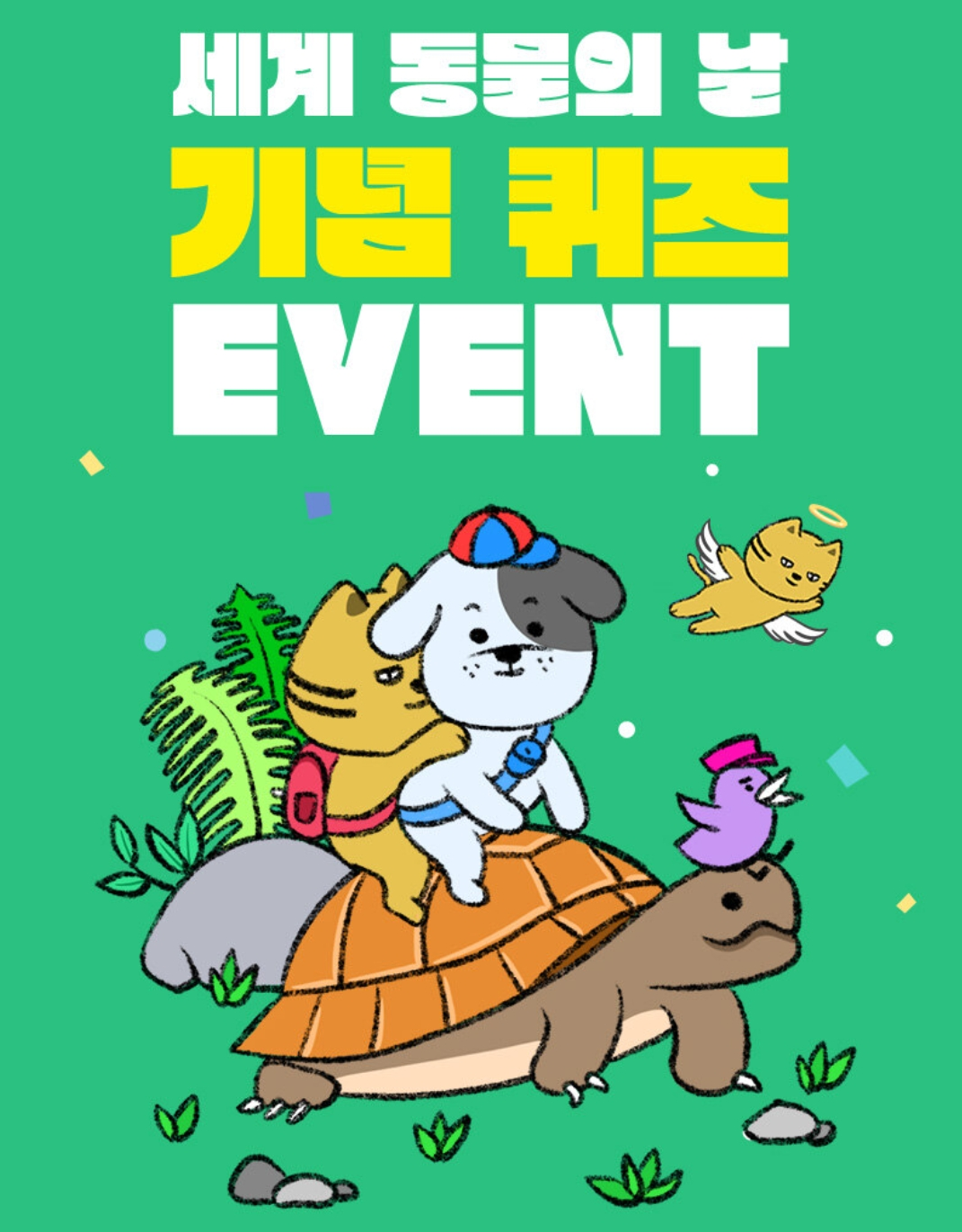 10월 4일이 어떤 날인지 아시나요? 바로 '세계 동물의 날'입니다. 세계 동물의 날은 멸종 위기종 보호와 동무로가 인간의 유대를 높이자는 취지로 제정된 기념일입니다. 10월 4일, 천사 같은 마음으로 동물과 더불어 같이 사는 세상을 꿈꿔봅니다.