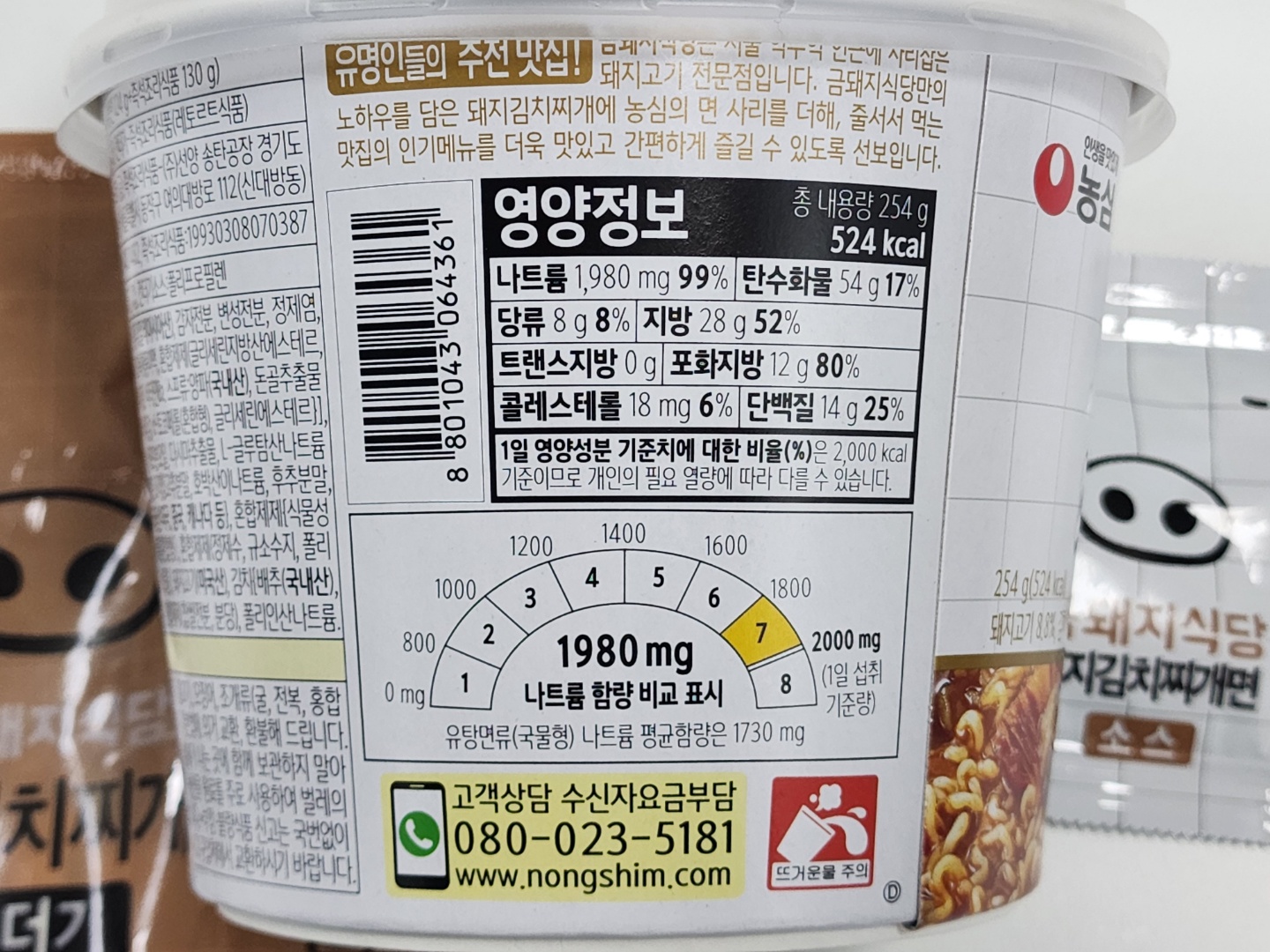 제품명 : 농심 금돼지식당 돼지김치찌개면