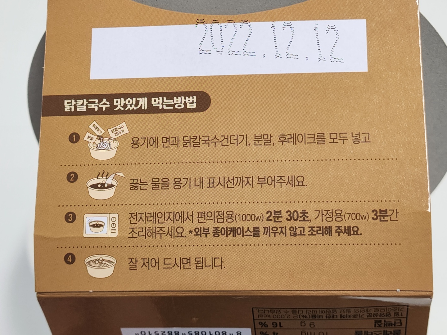 - 전자레인지에서 편의점용(1000W) 2분 30초, 가정용(700W) 3분간 조리해주세요. 외부 종이케이스를 끼우지 않고 조리해 주세요.