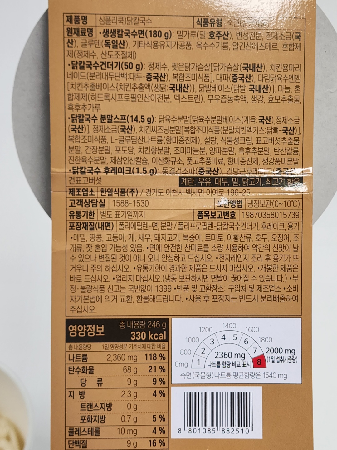 영양 정보 : 열량 330 kcal / 나트륨 2,360 mg