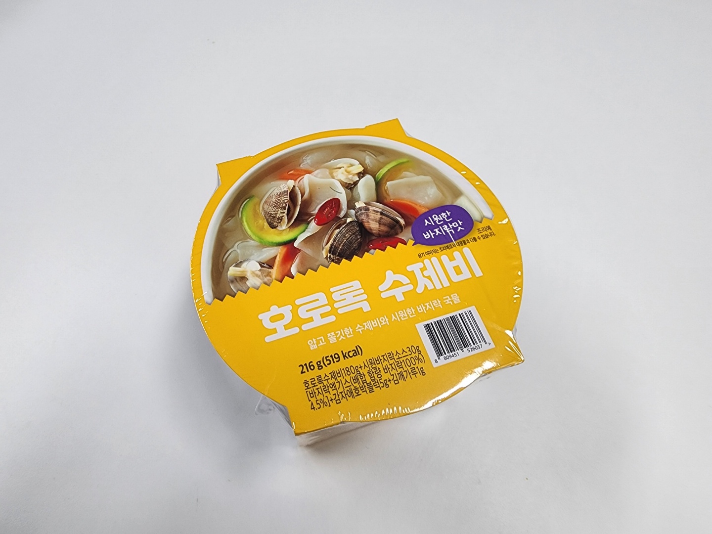 요샌 이름 참 잘 짓는 것 같습니다. '호로록 수제비' 라니.... 하지만 제품 커버의 조리예는 사기성이 농후한 사진입니다. 바지락'맛' 수제비일 뿐, 절대 바지락은 들어있지 않습니다. 전에 리뷰했던 '소반 바지락칼국수'는 실제 진공포장된 바지락이 들어 있었는데요. 가격도 별반 차이가 안 나는데(호로록 수제비 3,200원 vs. 소반 바지락칼국수 3,500원) 바지락수제비에 바지락 좀 넣어주면 더 좋지 않았을까 생각했습니다.