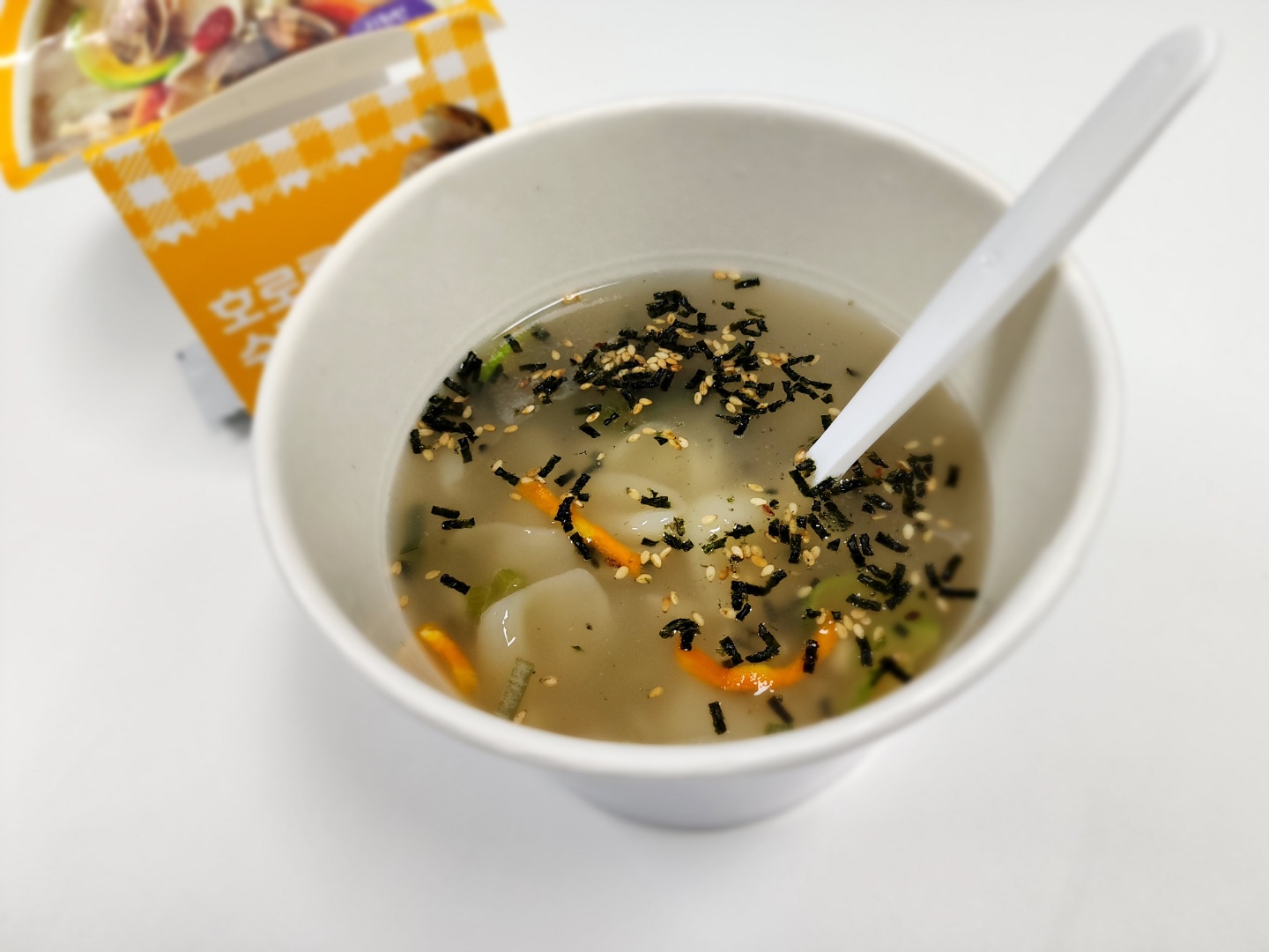그럼에도 불구하고 포기할 부분은 과감히 포기하는 것도 나쁘지는 않다고 생각합니다. 소반 바지락칼국수에 들어 있던 진공포장 바지락은 신기하긴 했지만, 실제 바지락을 먹는 듯한 느낌은 없었거든요. 진짜 바지락의 맛과 식감을 살리려면 바지락 살과 면을 통째로 냉동하여 -18도로 유통되는 비비고 바지락칼국수 정도는 되어야 하는데, 아무래도 편의점 유통 제품에 그런 퀄리티를 기대하긴 어려울 테죠.
