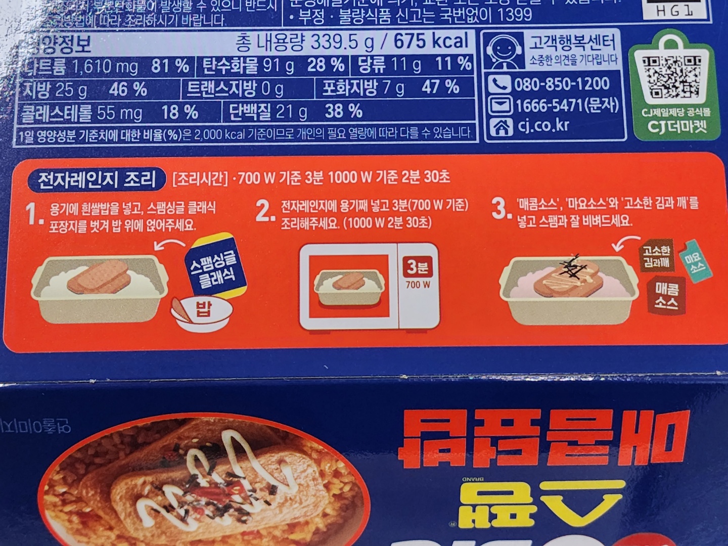 그러나 지난 번 스팸간장덮밥 리뷰에서도 지적했듯이 전자렌지 조리 시 스팸 튐 문제가 있으므로 아래의 개선된 조리법을 참고하세요.