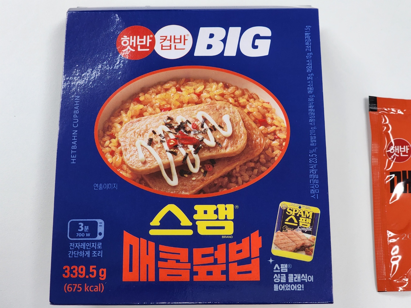 앞서 리뷰했던 스팸간장덮밥의 자매품입니다. 무게, 가격은 동일하고, '매콤'한 맛이므로 고추장이 추가되어 이로 인해 열량과 나트륨 함량이 증가했습니다. 실온보관이기에 쿠팡에서도 판매 중이네요.