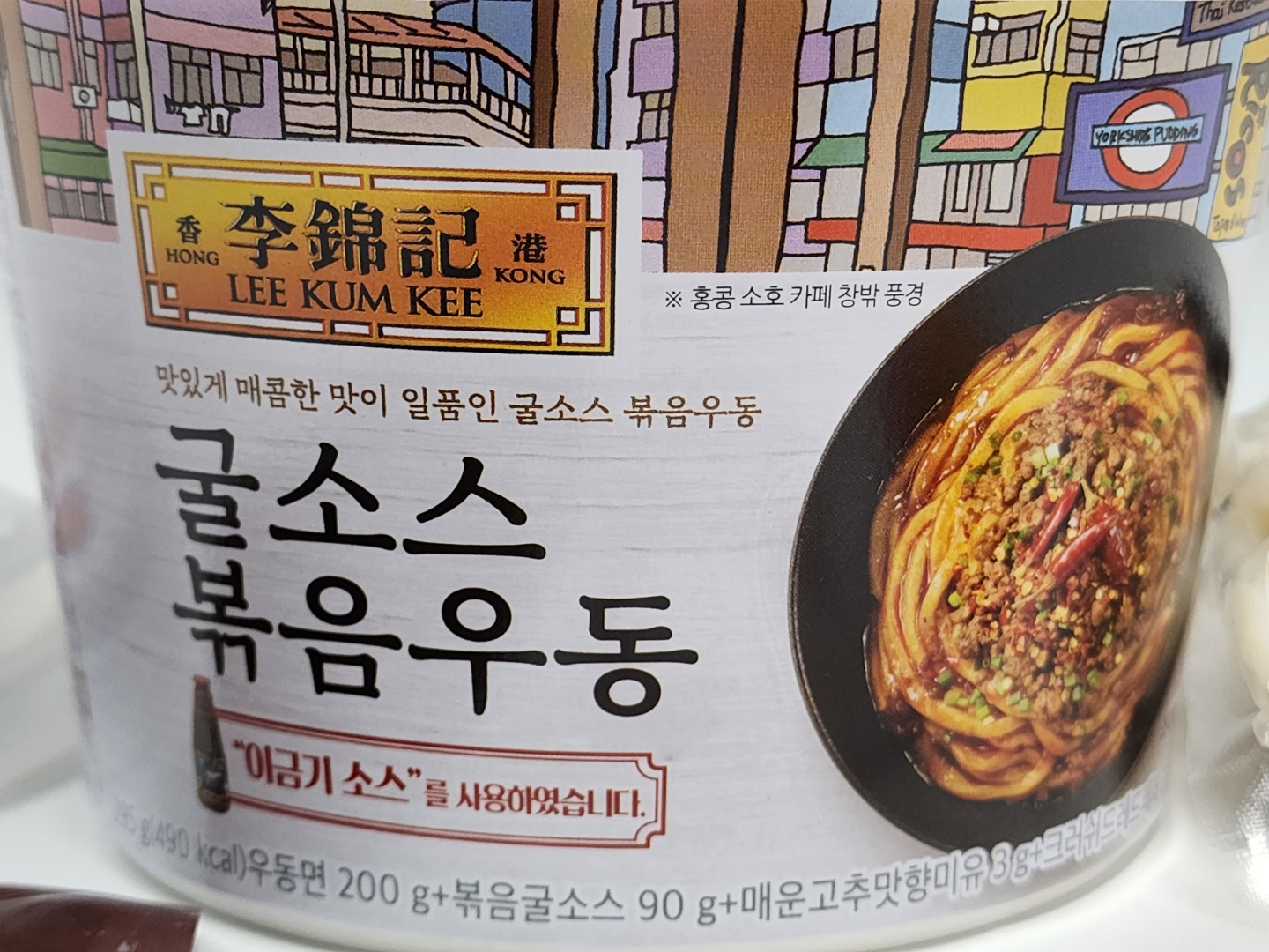 제품 포장 곳곳에 '이금기 굴소스'를 사용했다는 점을 강조하고 있습니다. 이금기 굴소스를 처음 들어보았습니다만, 검색해보니 꽤나 유명한 굴소스 제품이네요. 1888년에 설립된 130년 넘는 역사를 가진 중국기업으로, 글로벌 본사는 홍콩에 있습니다. 제품 포장의 멋진 일러스트를 '홍콩 소호 카페 창밖 풍경'으로 한 것도 그래서인가 봅니다.