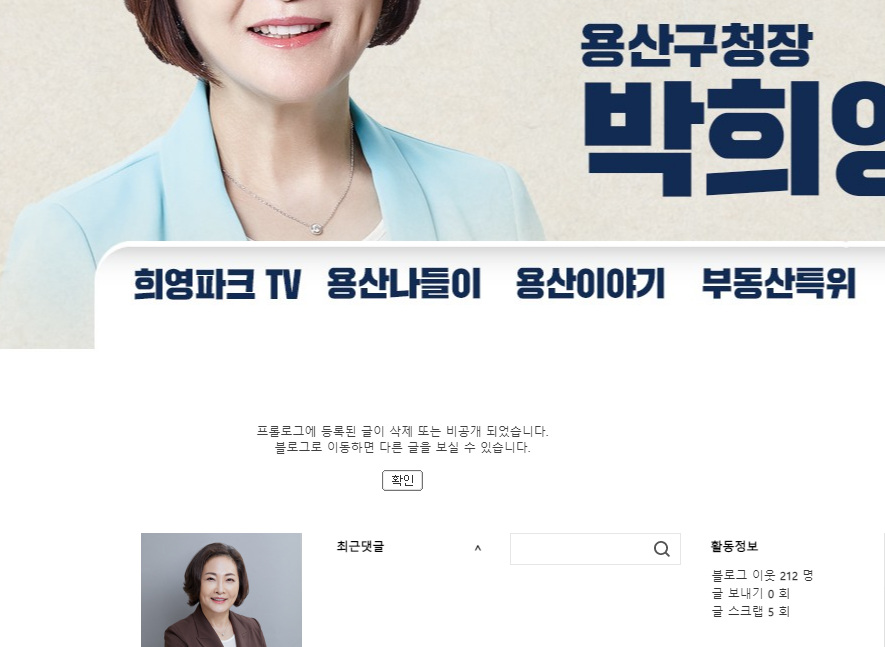 빛의 속도로 신속하게 차단된 박희영 구청장의 페이스북, 블로그, 유튜브, 인스타그램
