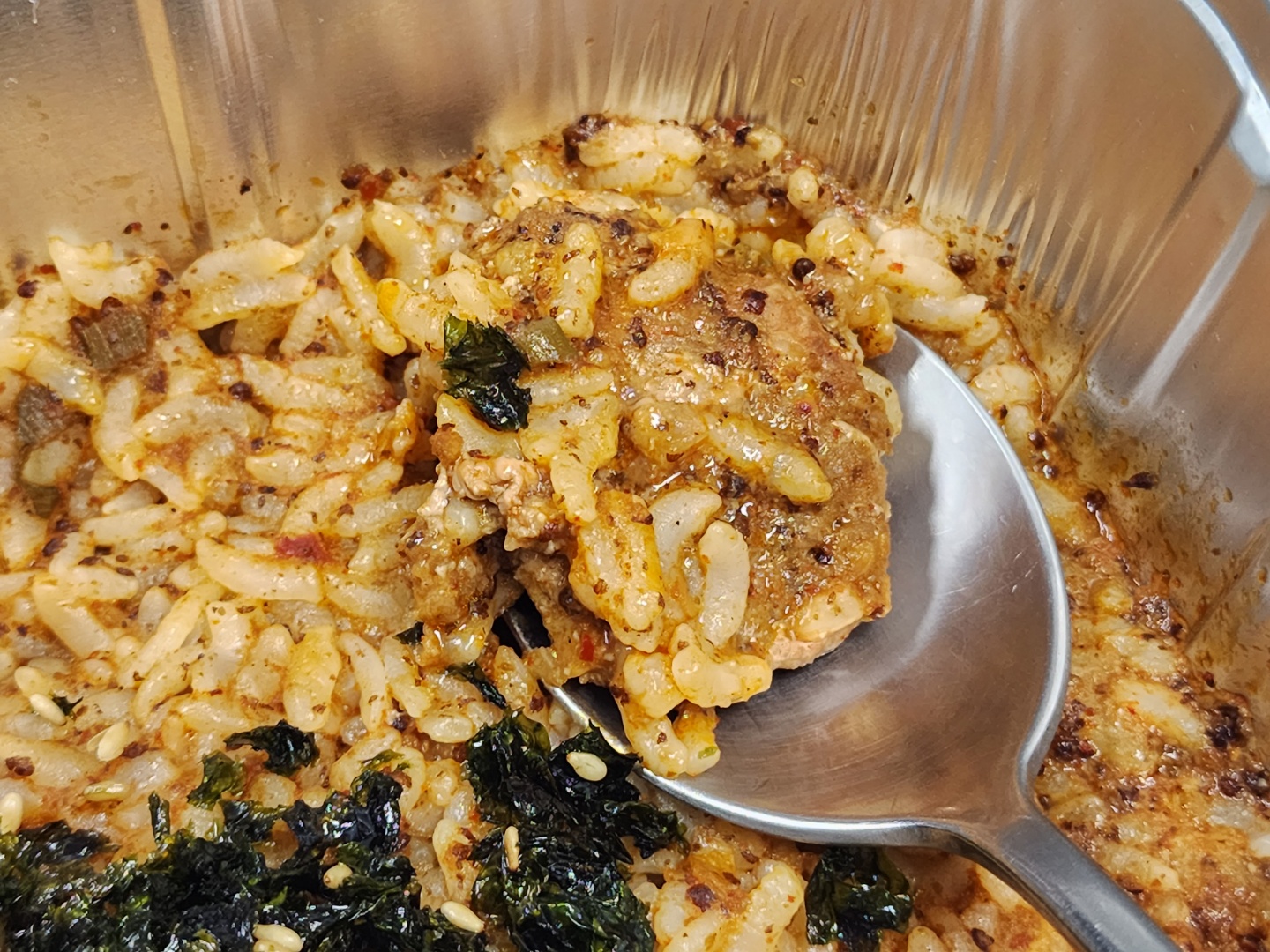 아래는 김까지 넣고 섞은 모습입니다. 맛은 어떨까요?