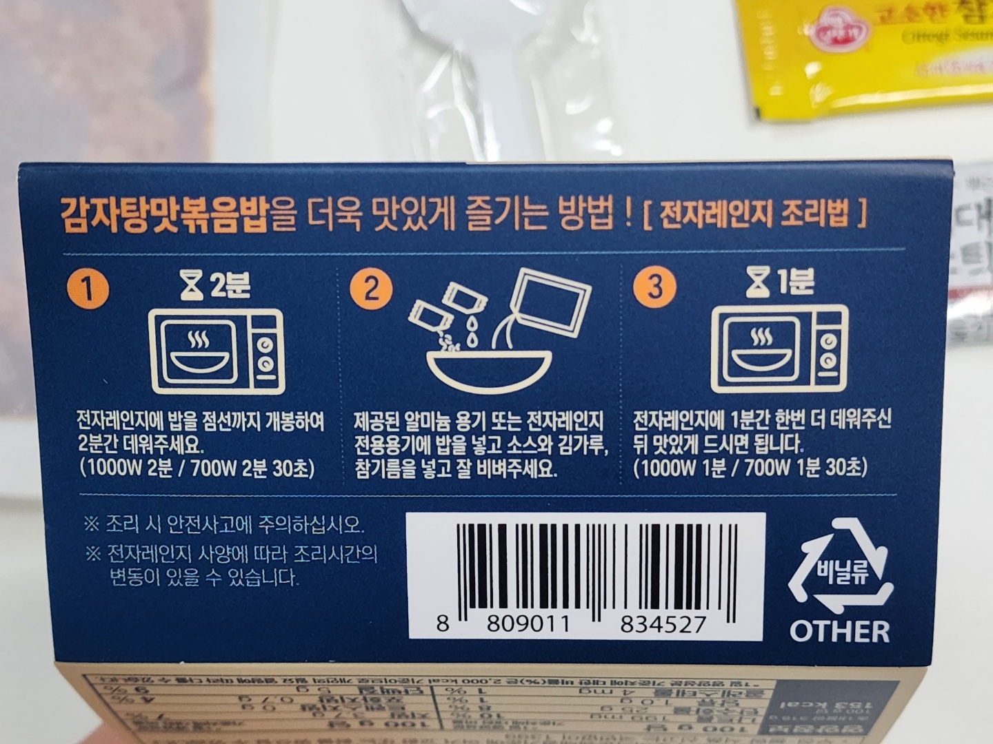 말씀드렸듯이 CU의 철판볶음밥 시리즈의 조리법에 비해 매우 현실성 있는 조리법입니다.