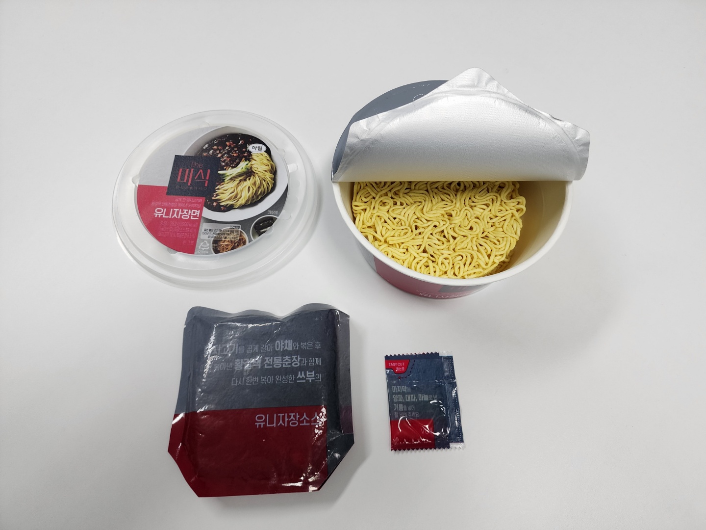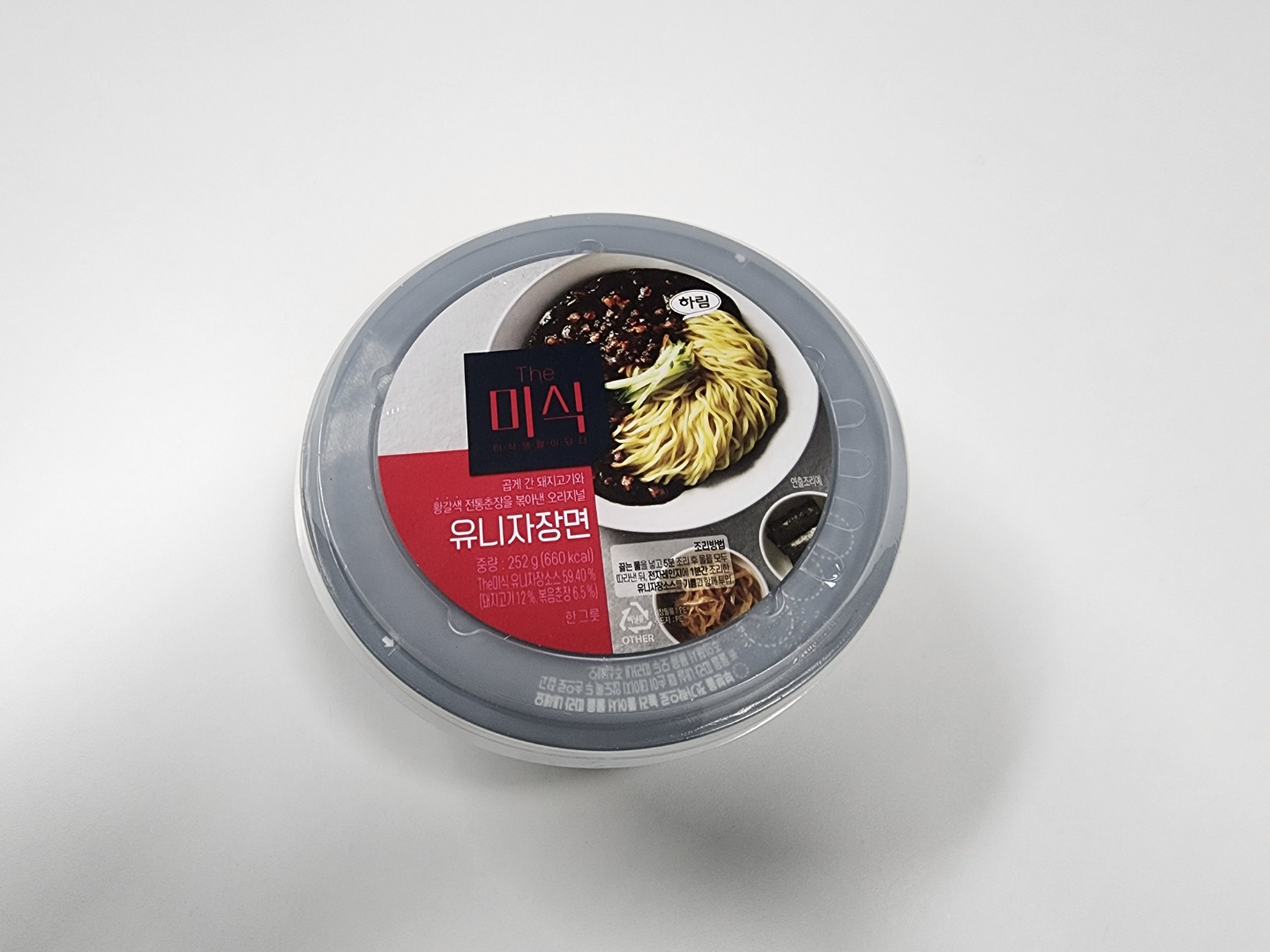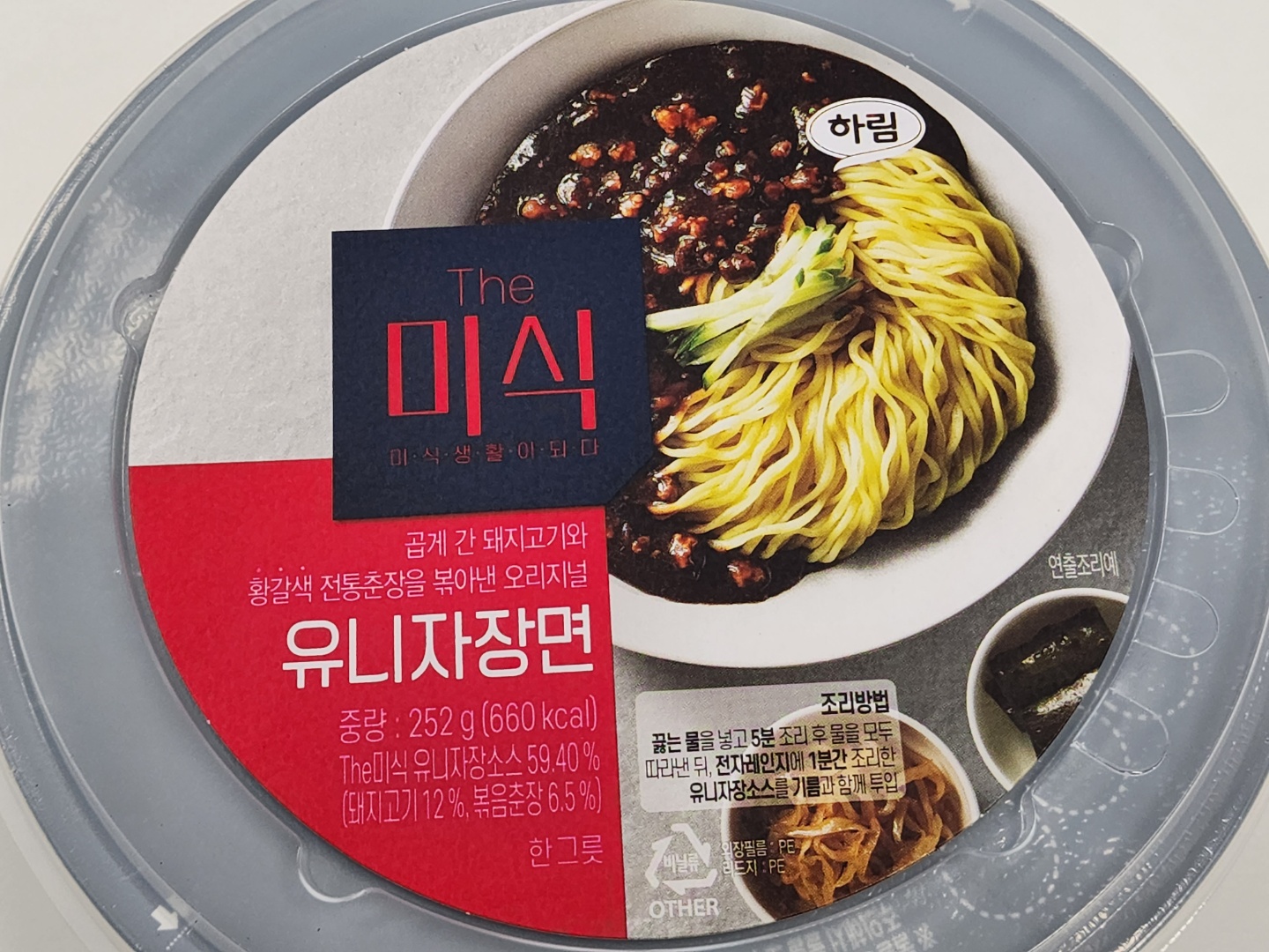 제품 커버 사진의 승리입니다. 뚜껑에 인쇄된 저 유니짜장면(저는 '자장면'이라고 부르는 게 싫어요) 사진을 보고 어찌 이 제품을 구입하지 않을 수 있단 말입니까. 그런데 하림에서 만들었다구요? 닭고기 하면 하림, 그 하림? 이미 샀는데 벌써부터 불안해지기 시작하네요.