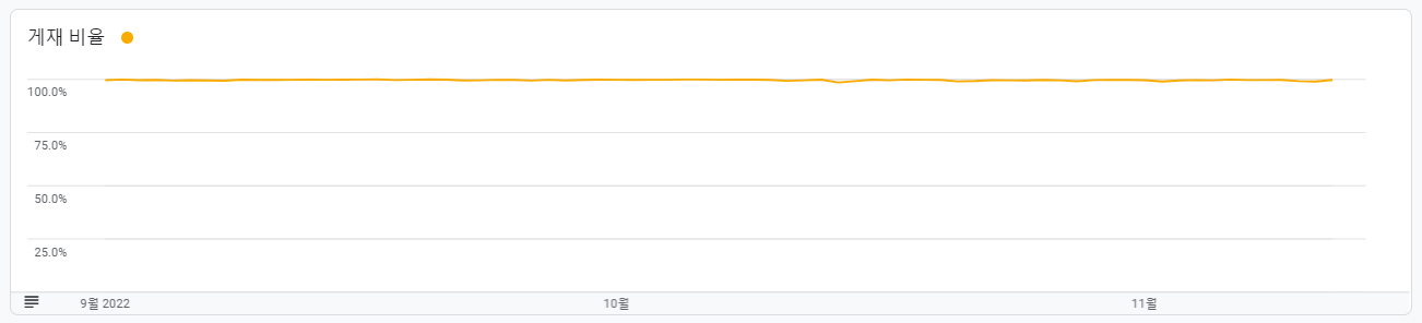 특이한 것은 xxx.tistory.com 과 같은 형식의 티스토리 도메인을 사용하지 않고 미니웹처럼 개인 도메인을 연결한 경우는 이와 같은 크롤링 오류가 거의 없다는 것입니다. 크롤링 오류를 겪는 전형적인 사례를 보면 광고 게재 비율이 2~3% 수준까지 급전직하합니다. 반면 개인 도메인을 적용한 미니웹은 동일한 티스토리임에도 불구하고 게재율이 줄곧 100% 가까이 유지되고 있습니다.