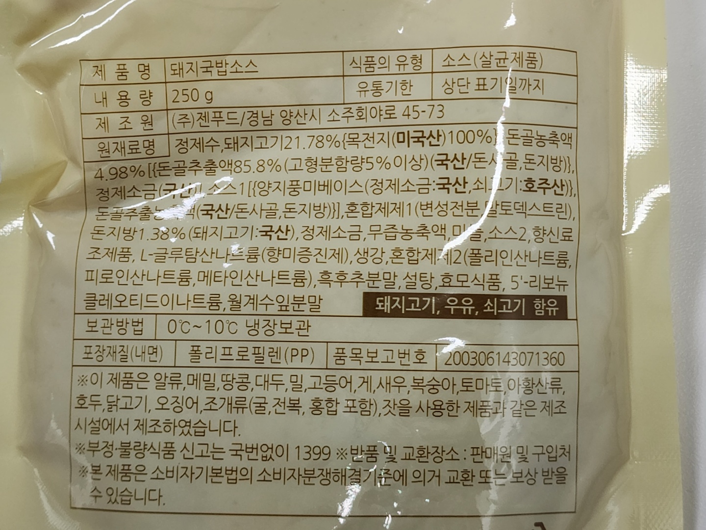편의점 : CU 제품명 : 편스토랑 복돼지면 중량 : 169 g 영양 정보 : 657 kcal, 나트륨 1,823 mg 보관 : 냉장보관 가격 : 3,500 원 맛 점수(별 5개 만점) : ★★★★★ 매운 맛 : 전혀 맵지 않다 / 살짝 맵다 / 맵