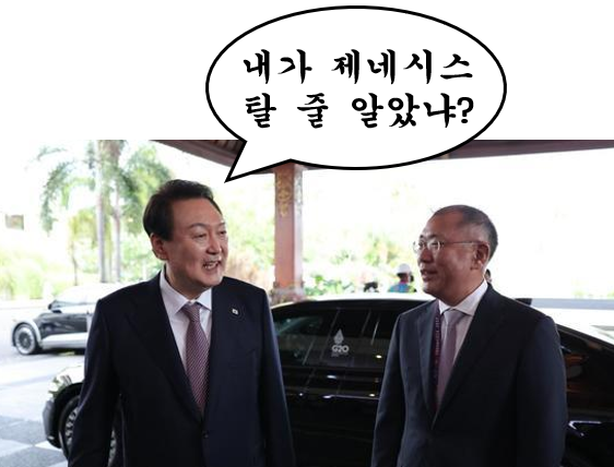 그러면 대한민국 윤석열 대통령은 의전차량으로 어떤 선택을 했을까요? 자국 전기차 홍보를 위해 공식 의전차량을 마다하는 시진핑 주석도 있는데, 당연히 윤석열 대통령은 제네시스 G80을 선택했을 것으로 생각이 됩니다. 그러나...