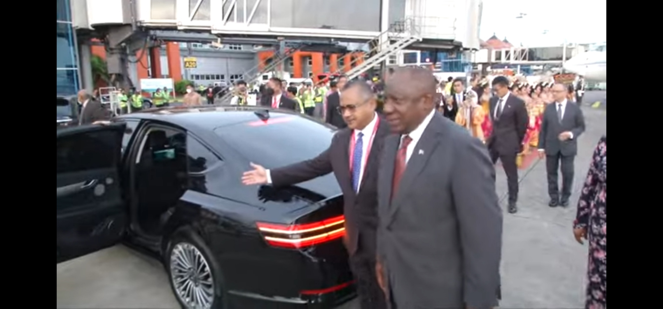 반면, 아르헨티나 페르난데즈 대통령, 수리남 알버트 람딘 외무장관, EU의 우르슐라 폰 데르 레이옌 집행위원장이나 찰스 마이클 의장 등은 공식 의전차량을 사용했습니다.