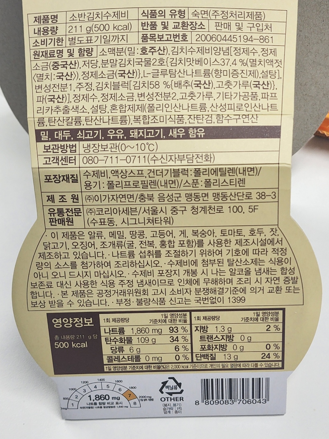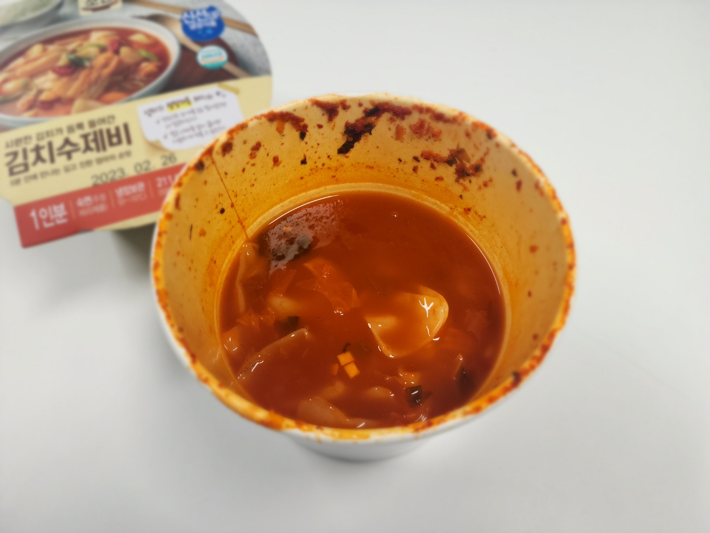 저 얌생이 같이 생긴 숟가락 좀 보세요. 무슨 요플레 숟가락인 줄 알았습니다. 저걸로 수제비를 떠 먹으라는 건가요? 정이 안가는 짓만 골라서 하는 것 같습니다. 제조원은 이가자연면..... 할말하안..... '로제크림 떡볶이' 말고는 딱이 만족스런 취식 경험이 없으니까요.