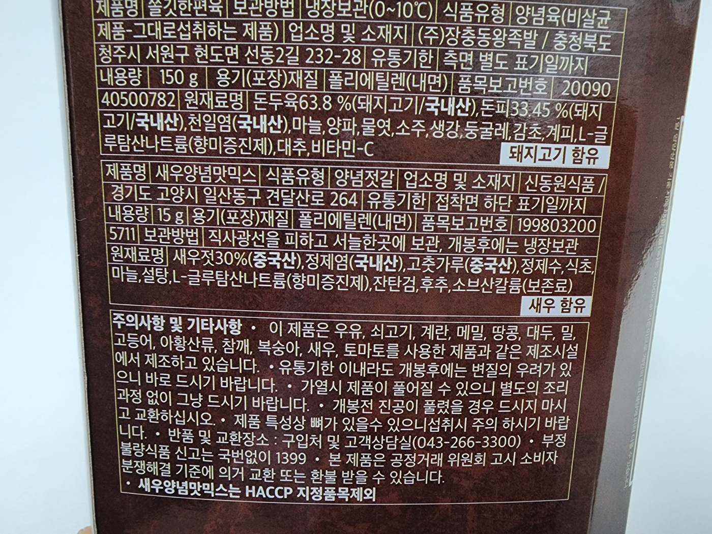 '얇은' 편육을 진공포장한 것과 새우젓이 끝입니다. 심플하네요. 나트륨 성분은 493mg로서 매우 적은 함량인 것 같지만, 새우젓 제외입니다. 순대 부분만 나트륨 함량이 저렇다는 거고 새우젓까지 포함하면 매우 높아지겠죠.