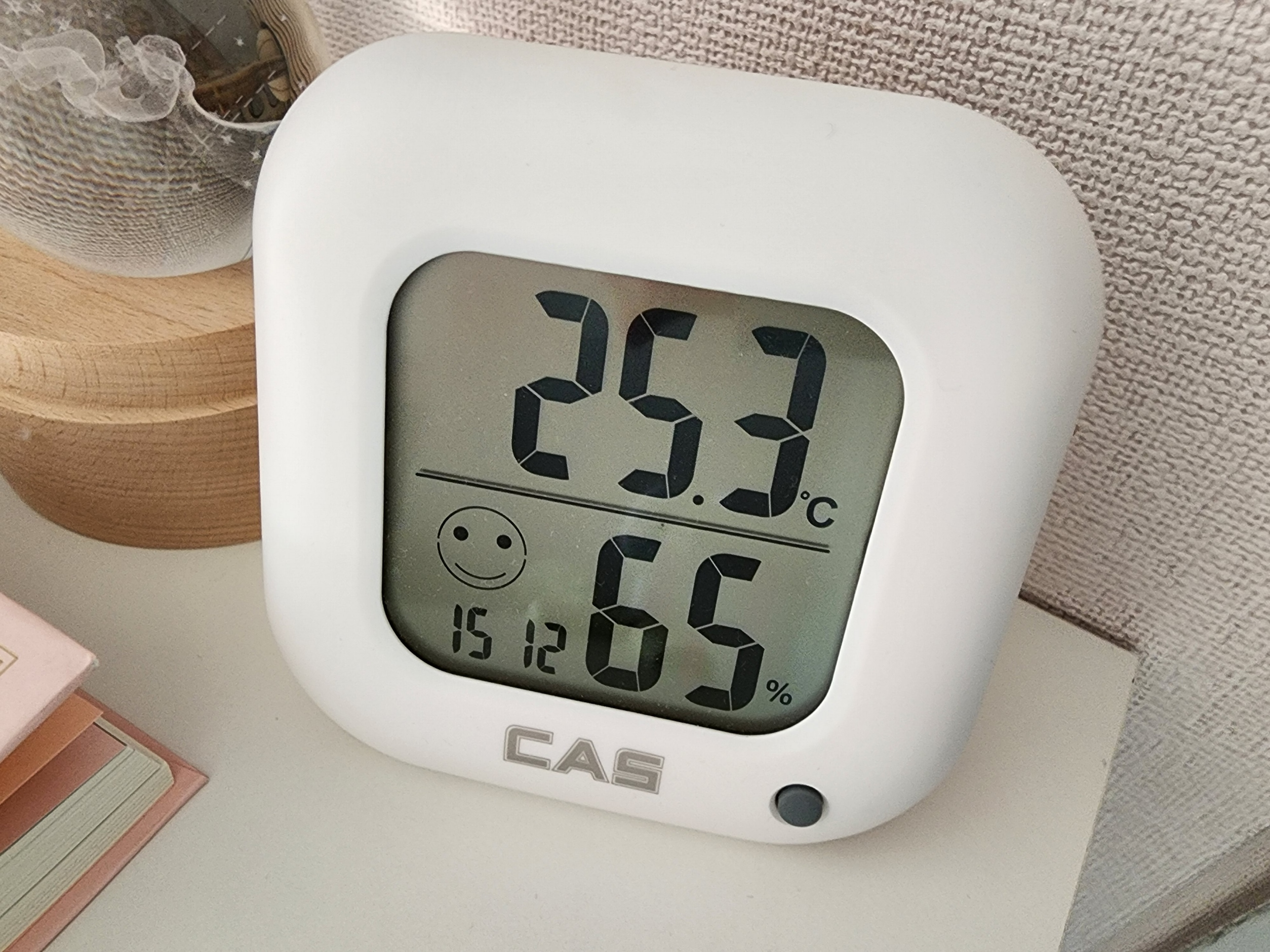내장 습도계는 45%지만, 실제로는 65%입니다. 한증막 느낌...