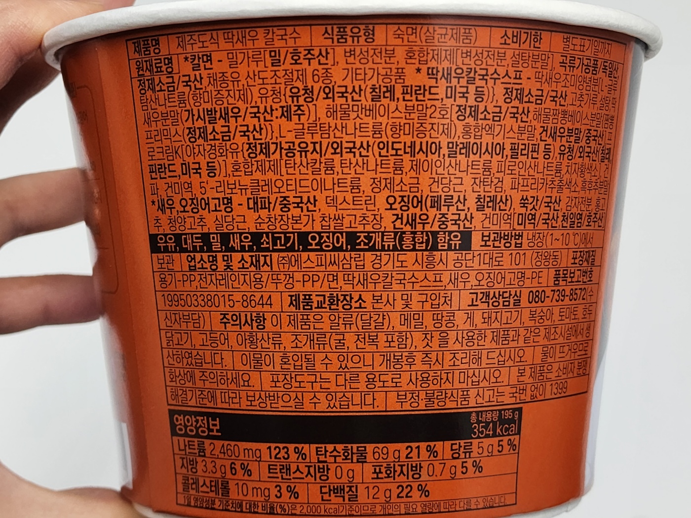 그리고 처음에 말씀드렸듯이 딱새우는 분말로만 첨가되어 있습니다. 건더기에 새우 형체가 보이긴 하는데 저건 '제주맑은 바다의 수심 50~120m에 사는 딱새우'가 아니고 중국산 건새우입니다.