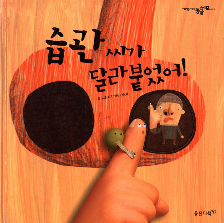 검지에 코파기 습관 씨가 붙었다. 그런데 코파기 습관 씨를 떼기 위해서 달콤한 간식을 먹다가 입에 군것질 습관 씨가 붙었다. 결국은 책 읽기 습관 씨를 붙혀서 나쁜 습관을 뗐다.