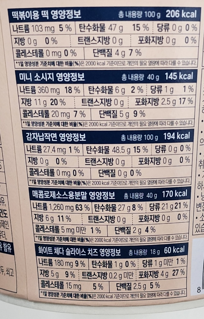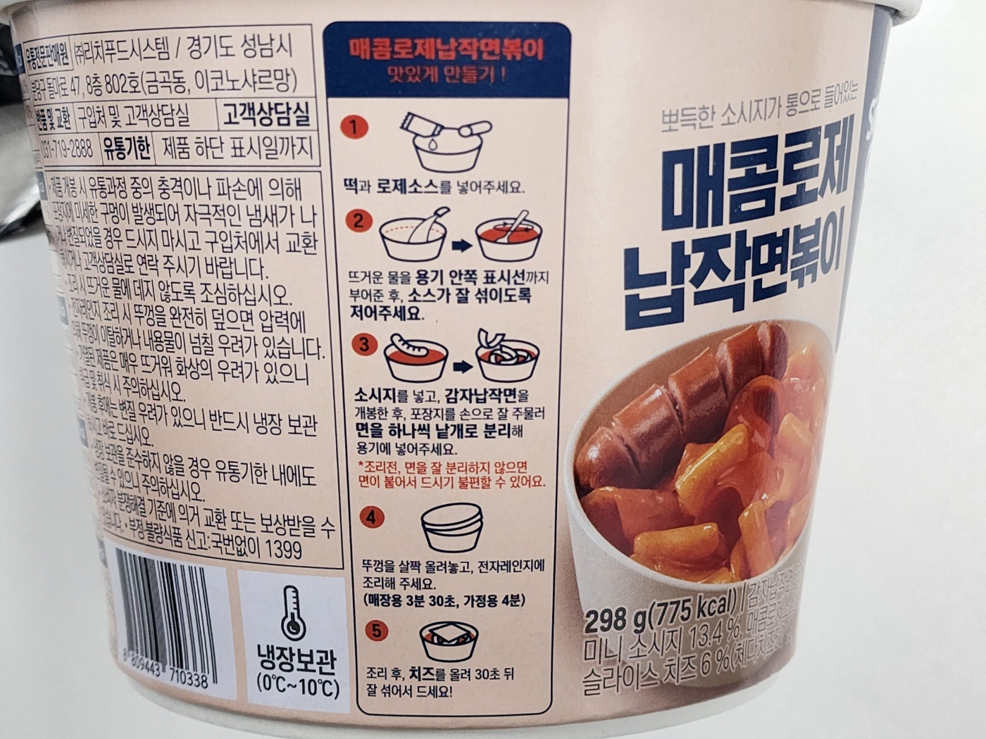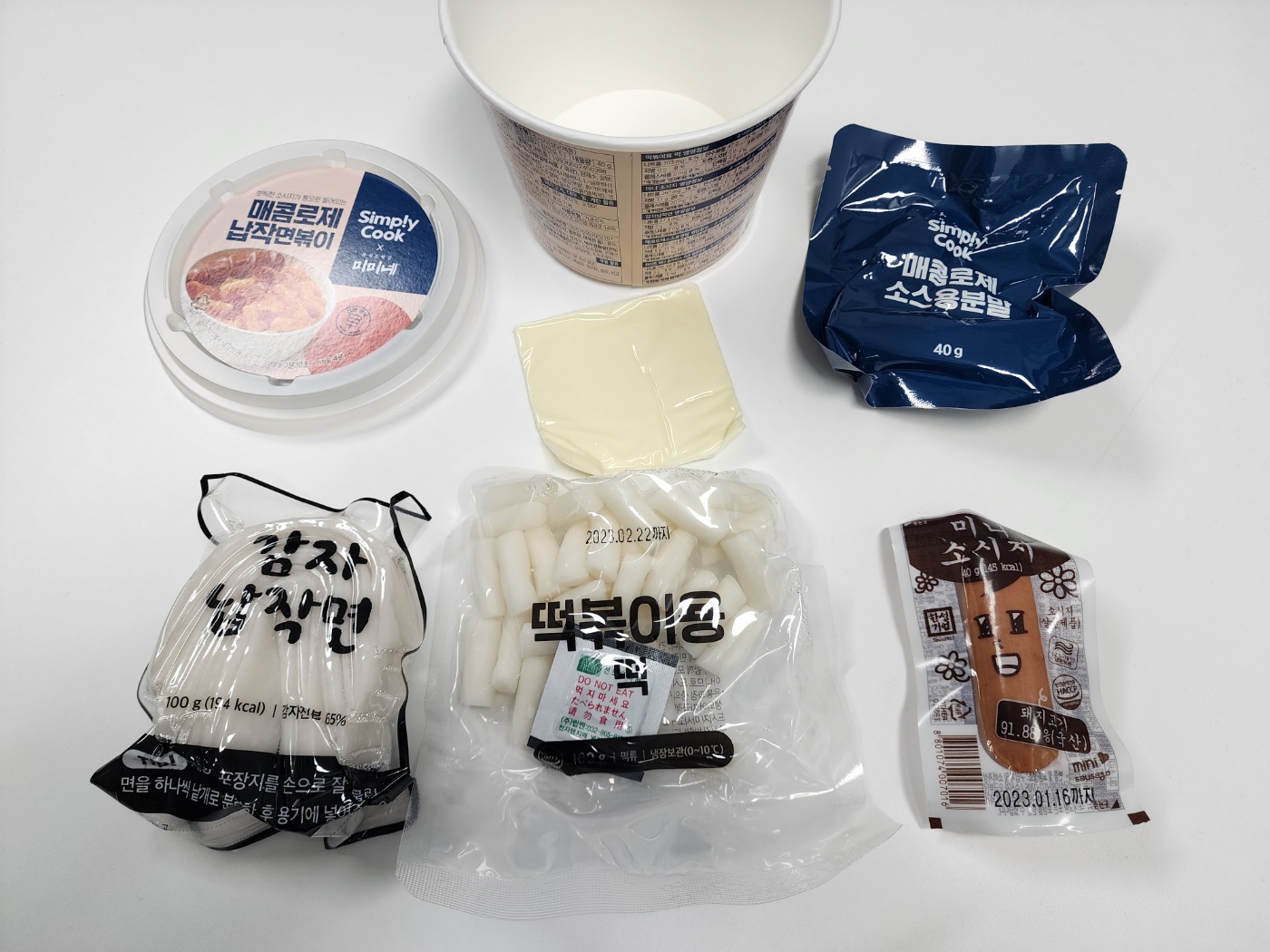 아래 사진과 같이 기본 떡볶이 떡 외에 감자납작면(사리)과 치즈, 미니소세지 등 다양한 구성이에요.