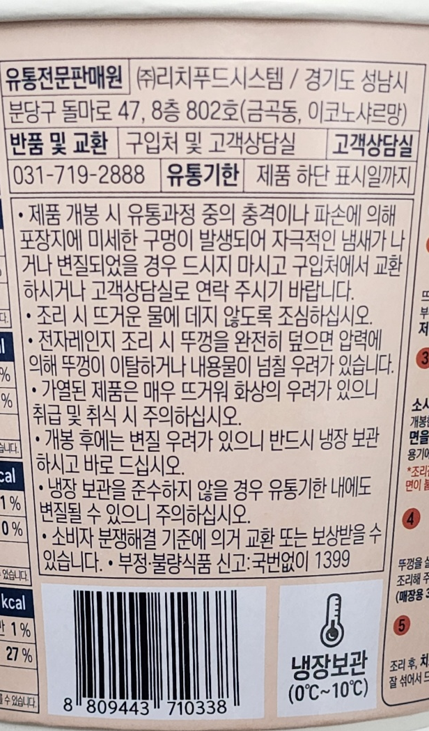 - 뚜껑을 살짝 올려놓고, 전자레인지에 조리해 주세요.(매장용 3분 30초, 가정용 4분)