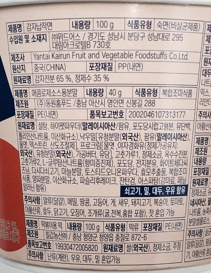 다른 떡볶이류 제품과 비교하면 조금 비싼 감은 있지만, 감자납작면, 떡, 소세지 등 다양한 구성이 입을 버라리어티하게 즐겁게 해줍니다. 감자납작면은 조리 후 보면 얼핏 돼지 껍데기 같이 생겼는데요. 이게 어찌나 쫄깃한지!! 걸출한 맛을 보여줍니다. 바닥에 깔려 있는 떡이 주인공일 텐데, 뭔가 조연이 너무 잘 생겨서 주연이 빛 바랜 느낌??