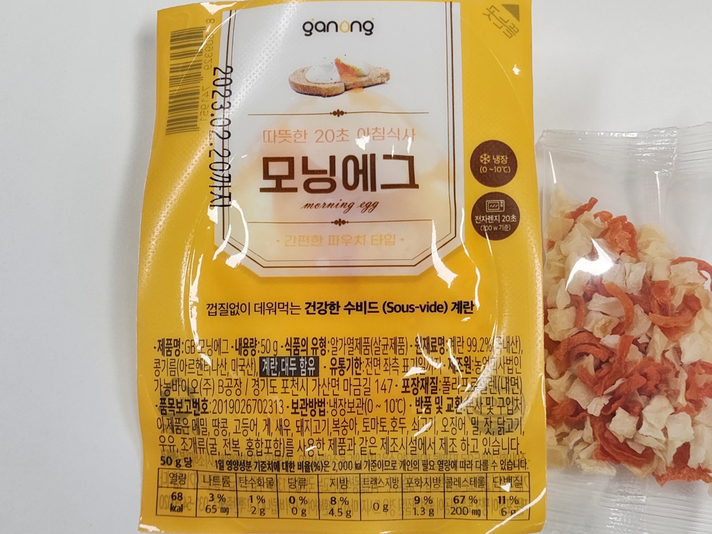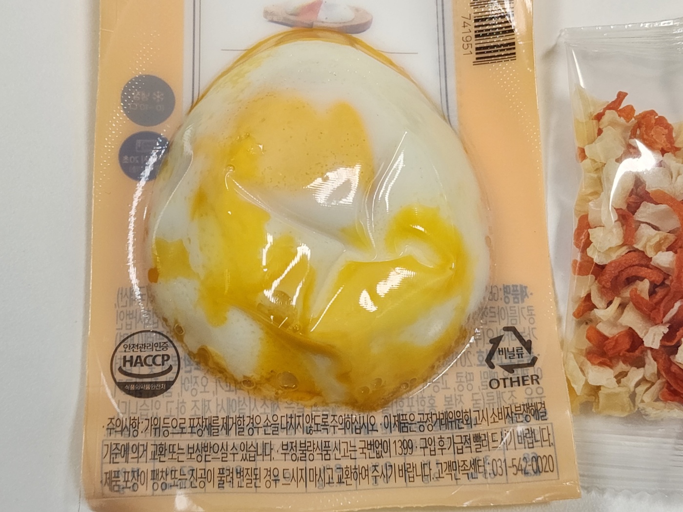 모닝에그라고 적힌 구성품이 보이는데, 이게 바로 계란 반숙입니다. 아무리 냉장보관이라고 하지만, 저런 반숙상태로 계란이 변질되지 않고 유통될 수 있다는 게 참 신기하더군요.